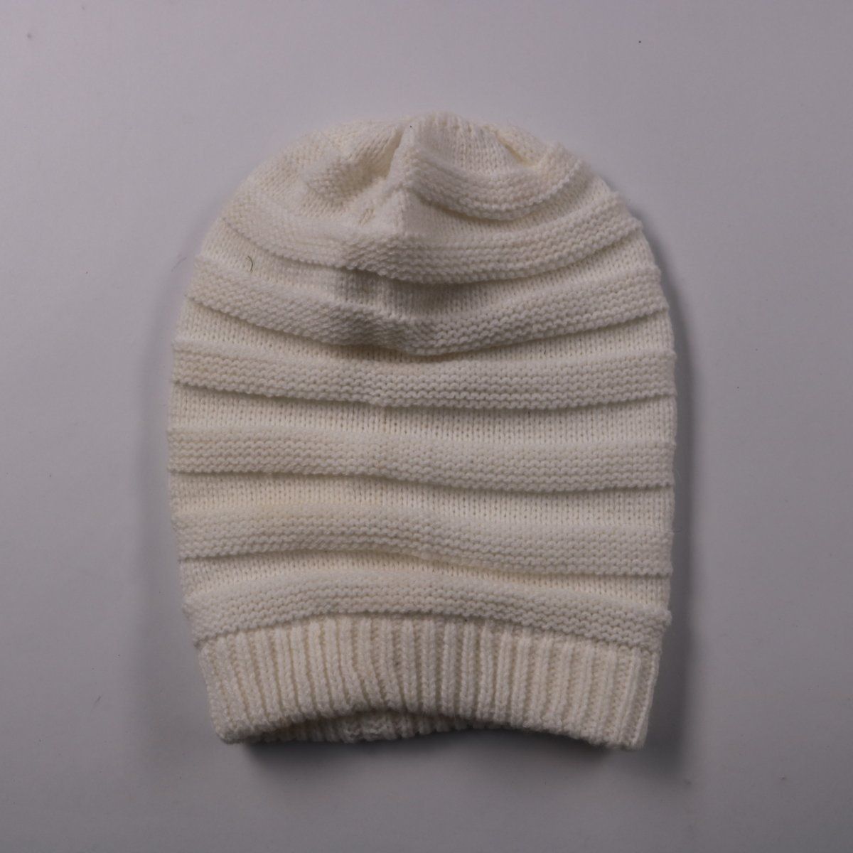 Вязаная шапка бини без бренда, молочного/бежевого цвета с фактурной вязкой. Подойдёт на холодную погоду для повседневных прогулок и города. Мягкая посадка и эластичная резинка хорошо держат форму и не сползают.