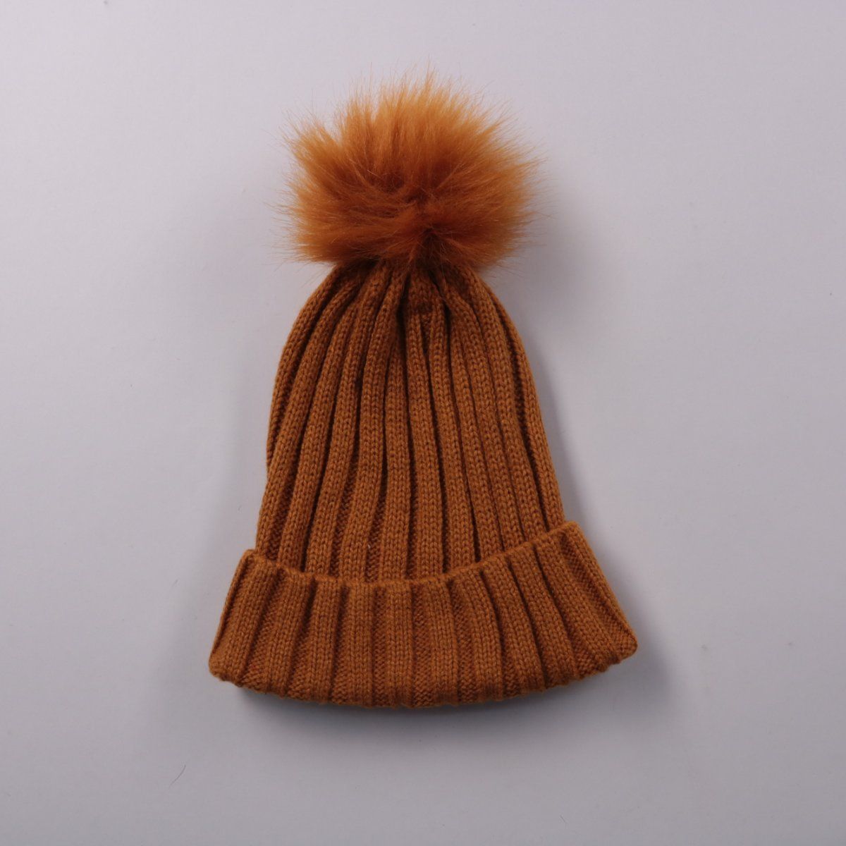 Вязаная шапка бини в рубчик с помпоном, без указания бренда. Подойдёт для зимних прогулок и повседневной носки, отворот хорошо закрывает уши. Тёплая и компактно помещается в карман или сумку.