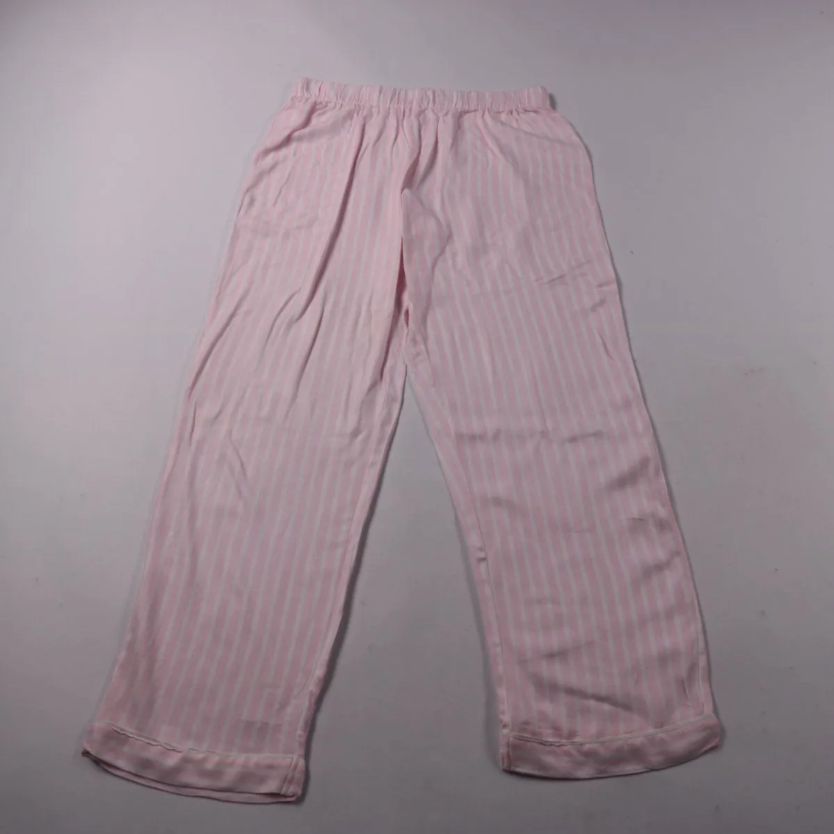 Домашние брюки/низ от пижамы в розовую полоску с эластичным поясом. Подойдут для сна и дома, ткань тонкая и лёгкая. Практичны тем, что быстро сохнут после стирки.