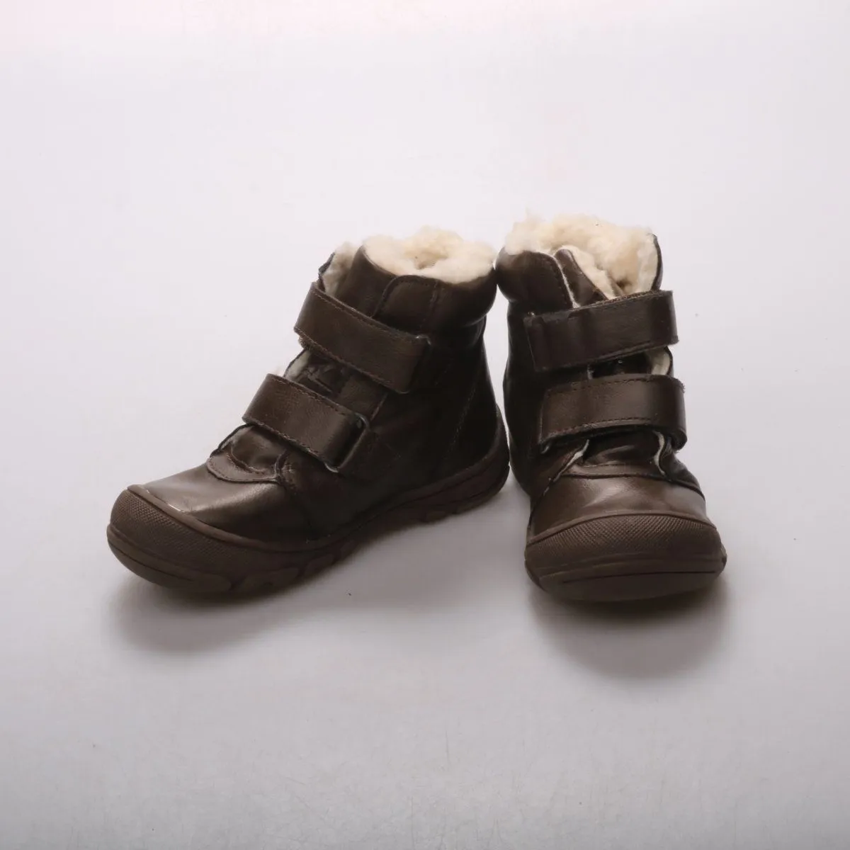 Зимние ботинки Idellmodi тёмно-коричневого цвета с утеплённой подкладкой и застёжками на липучках. Подойдут для повседневных зимних прогулок, есть декоративная звёздочка сбоку. Практичное преимущество — быстро надеваются и хорошо фиксируются на ноге.