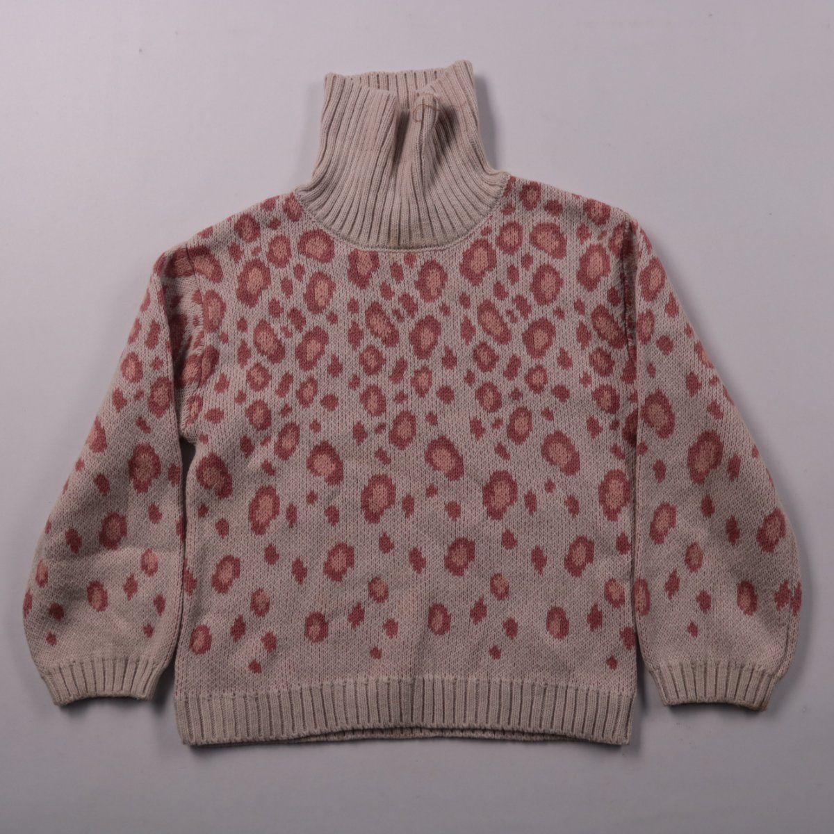 Детский свитер Isaac Mizrahi New York с высоким воротником и леопардовым принтом в розово-бежевых тонах. Подойдёт для детского сада и прогулок в прохладную погоду. Практичный плюс — мягкий трикотаж и простой уход (можно стирать в машине).