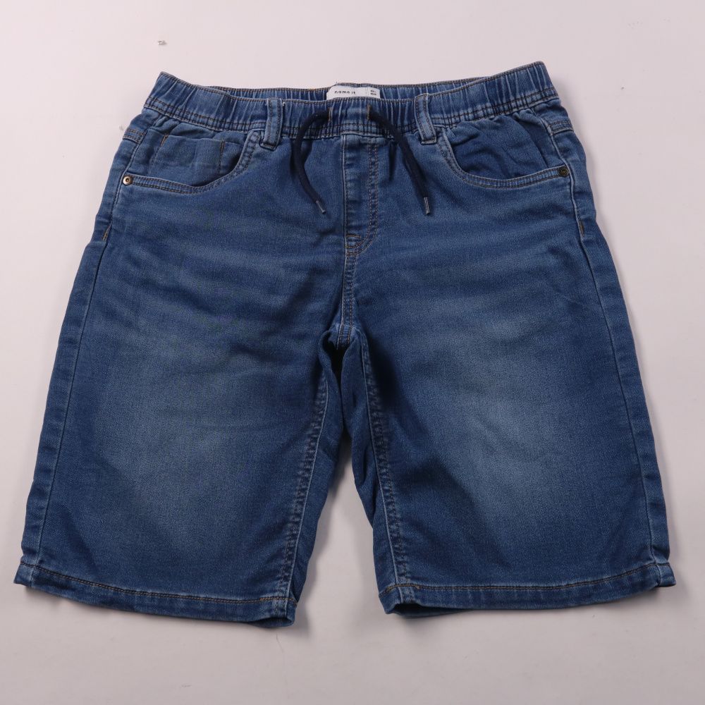 Джинсовые шорты Name It синего цвета на эластичном поясе со шнурком. Подойдут мальчику для прогулок и повседневной носки в тёплую погоду. Практичны тем, что пояс регулируется и есть карманы.