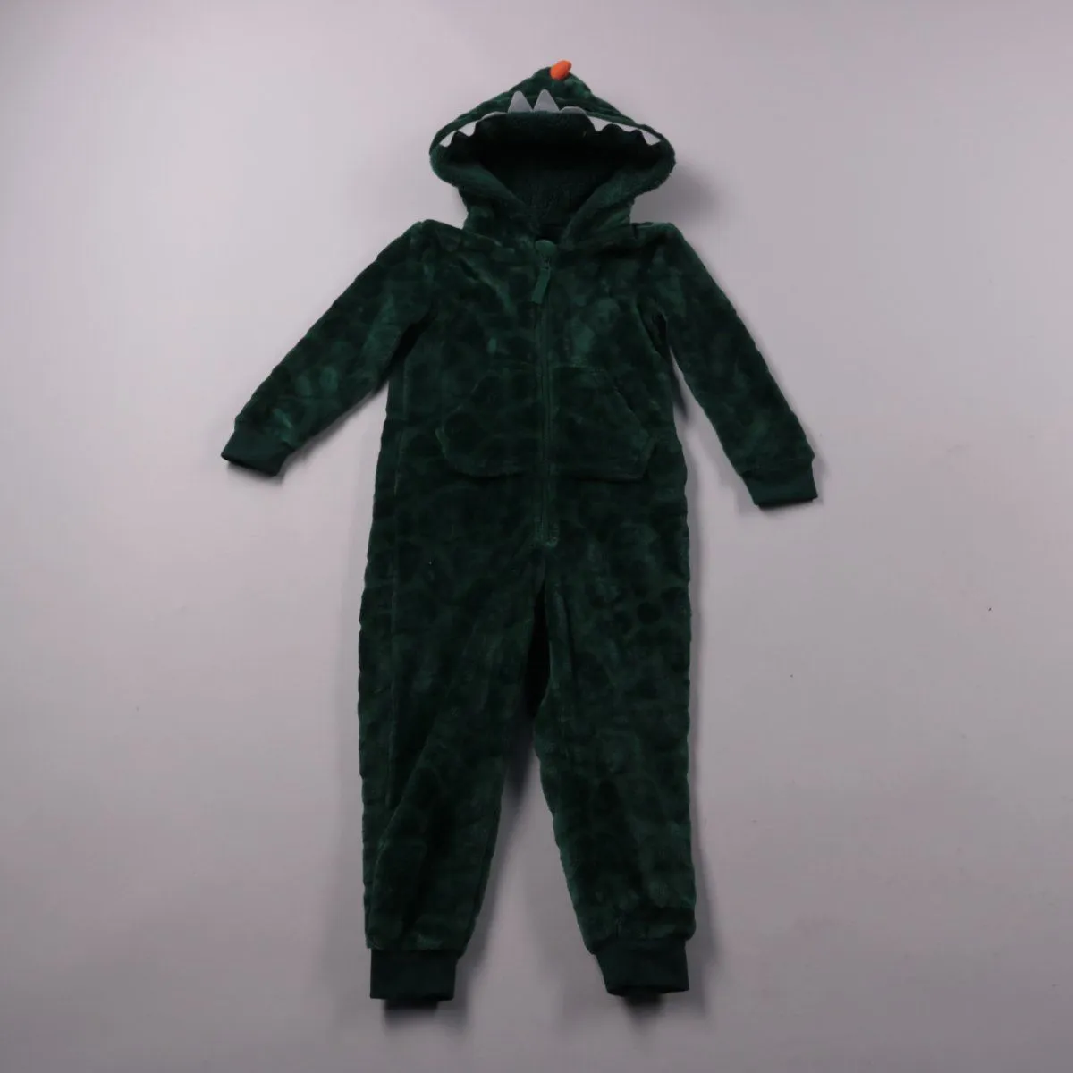 Флисовый комбинезон George зелёного цвета с капюшоном в виде динозавра и застёжкой на молнию. Подойдёт для дома, сна или прохладных дней в детском саду. Мягкий материал и манжеты на рукавах и штанинах помогают сохранять тепло и удобно сидят.