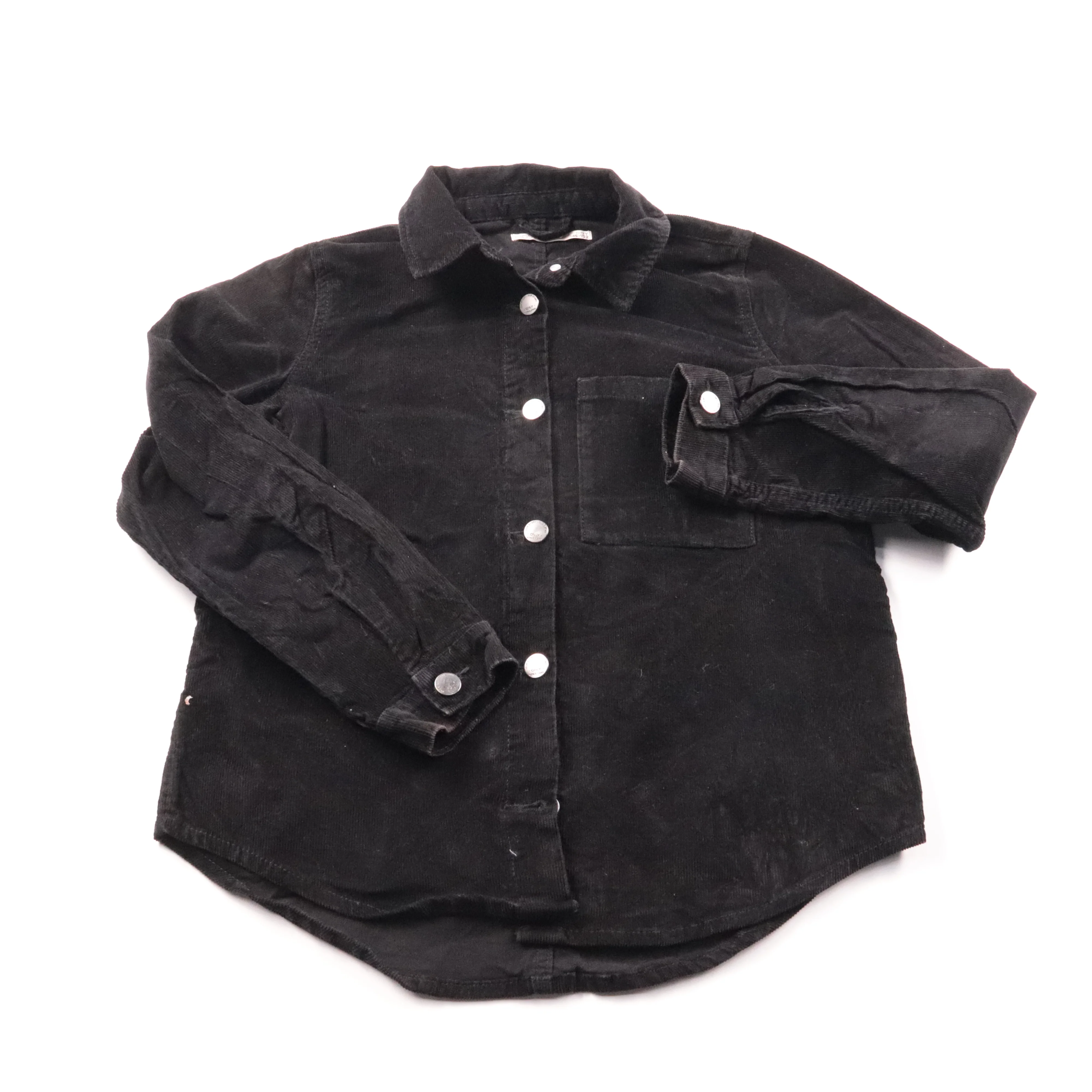 Вельветовая рубашка KIDS чёрного цвета на кнопках, с длинным рукавом и нагрудным карманом. Подойдёт для школы и повседневной носки в прохладную погоду, можно носить как лёгкую верхнюю рубашку поверх футболки. Плотная ткань хорошо держит форму и не треб...
