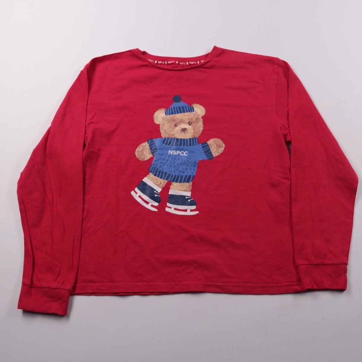 Красная кофта NSPCC с принтом медвежонка на коньках. Подойдёт для повседневной носки в школу или на прогулки в прохладную погоду. Мягкий хлопковый материал комфортный и простой в уходе.