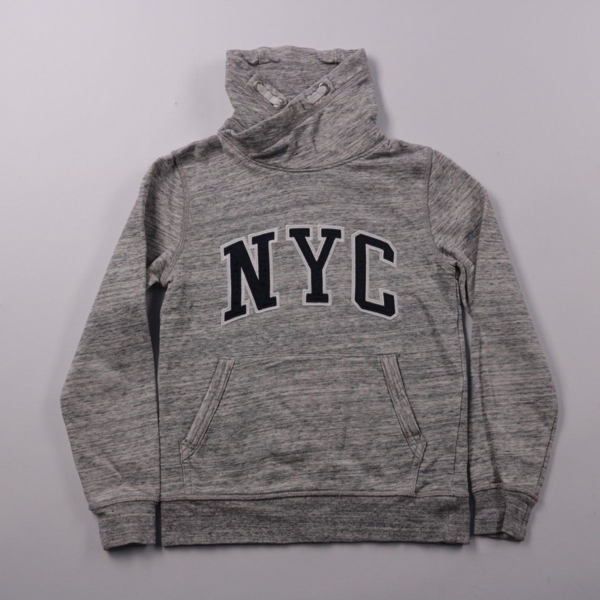 Толстовка L.O.G.G. серого меланжа с высоким воротником и принтом NYC, спереди карман-кенгуру. Подойдёт для школы и прогулок в прохладную погоду, манжеты и низ на резинке хорошо держат форму.
