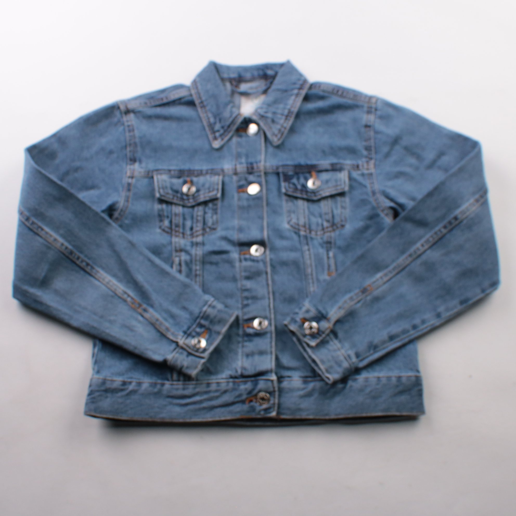 Джинсовка Primark из 100% хлопка, классическая модель на пуговицах с нагрудными карманами. Подойдёт для прогулок весной и осенью, легко сочетается с платьями и джинсами. Плотный деним хорошо держит форму и не требует сложного ухода.