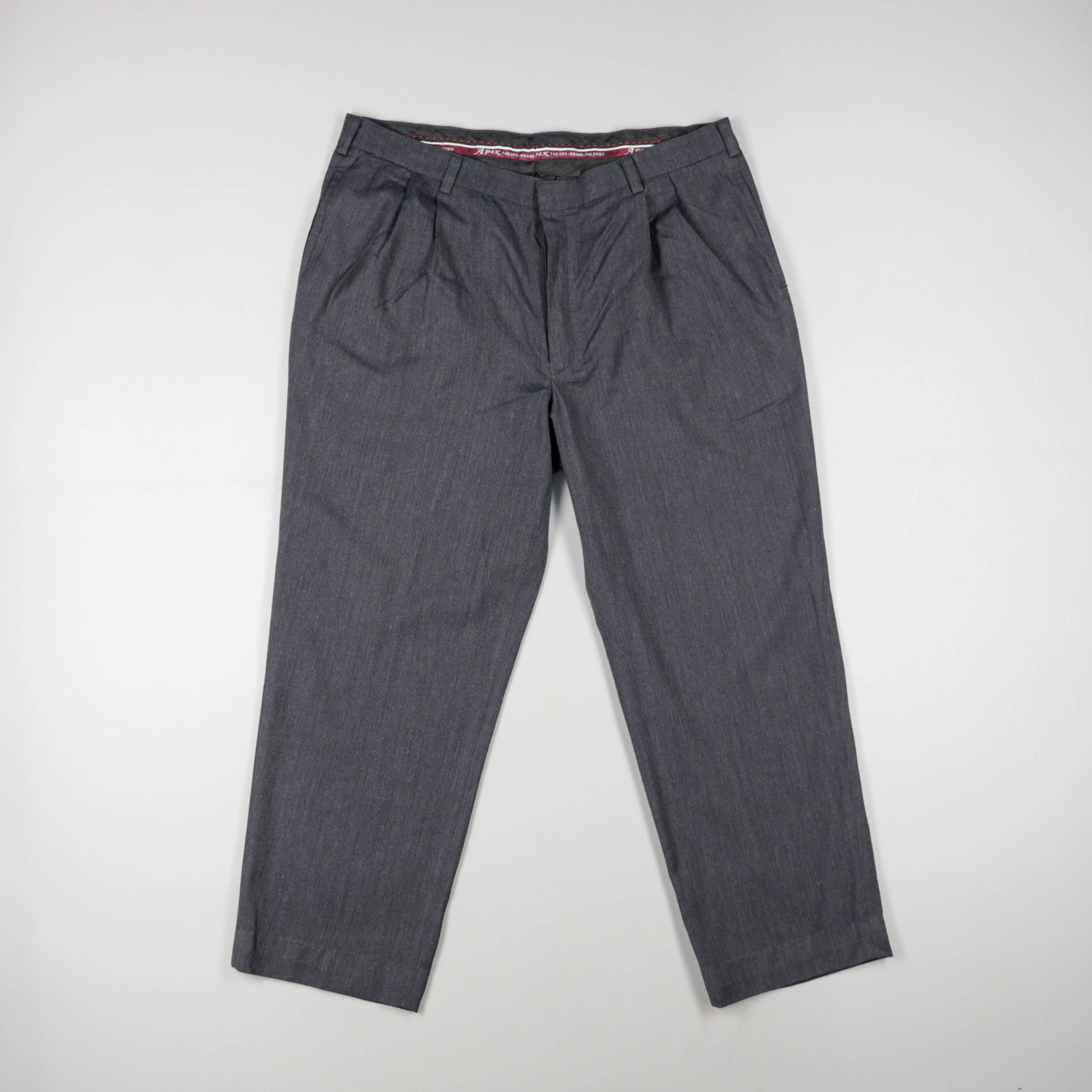 Мужские классические брюки тёмно-серого цвета со стрелками и защипами спереди. Подойдут для офиса, деловых встреч и повседневных образов в стиле smart casual. Практичный немаркий оттенок легко сочетать с рубашками, джемперами и пиджаками.