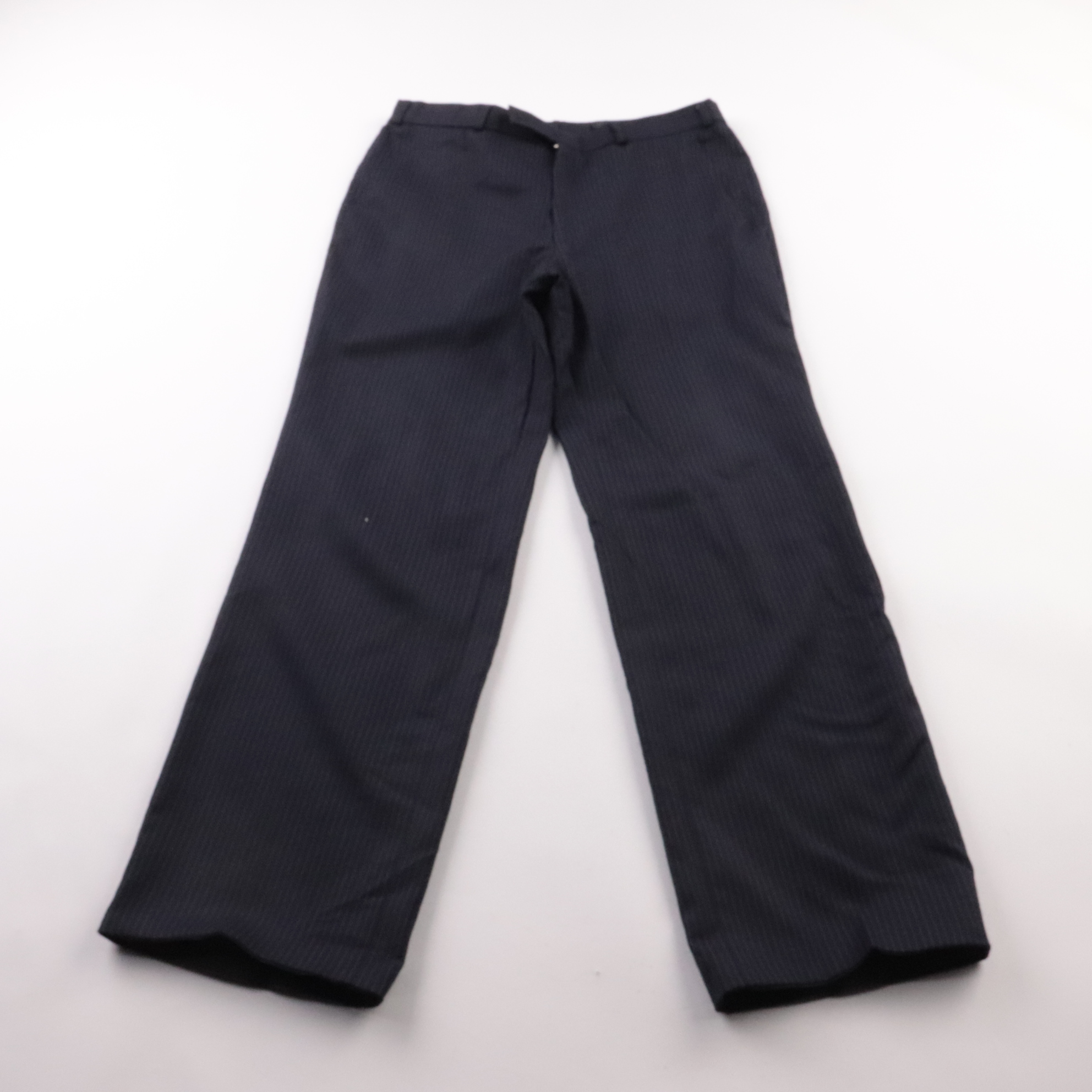 Мужские классические брюки GroBe тёмно-синего цвета в тонкую полоску. Подойдут для офиса и деловых мероприятий, легко сочетаются с рубашкой и пиджаком. Практичный плюс — плотная ткань держит форму и выглядит аккуратно.