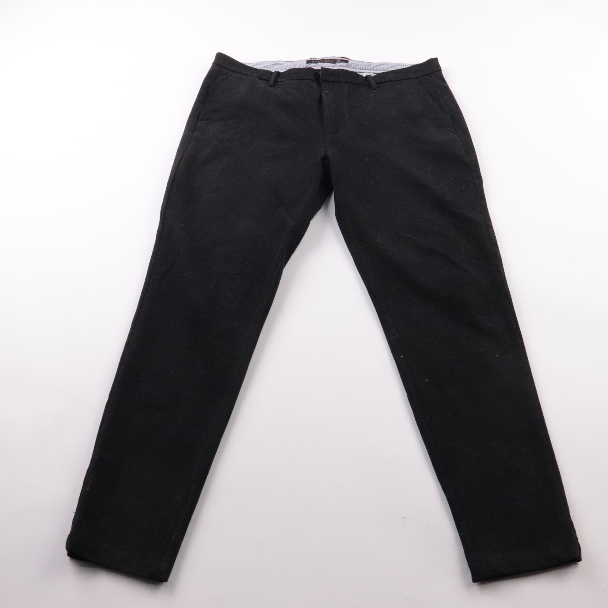 Мужские брюки Zara Man в классическом стиле, чёрного цвета, со шлёвками под ремень и боковыми карманами. Подойдут для офиса и повседневных образов в прохладную погоду. Практичный плюс — ткань со стрейчем, поэтому посадка комфортнее в движении.