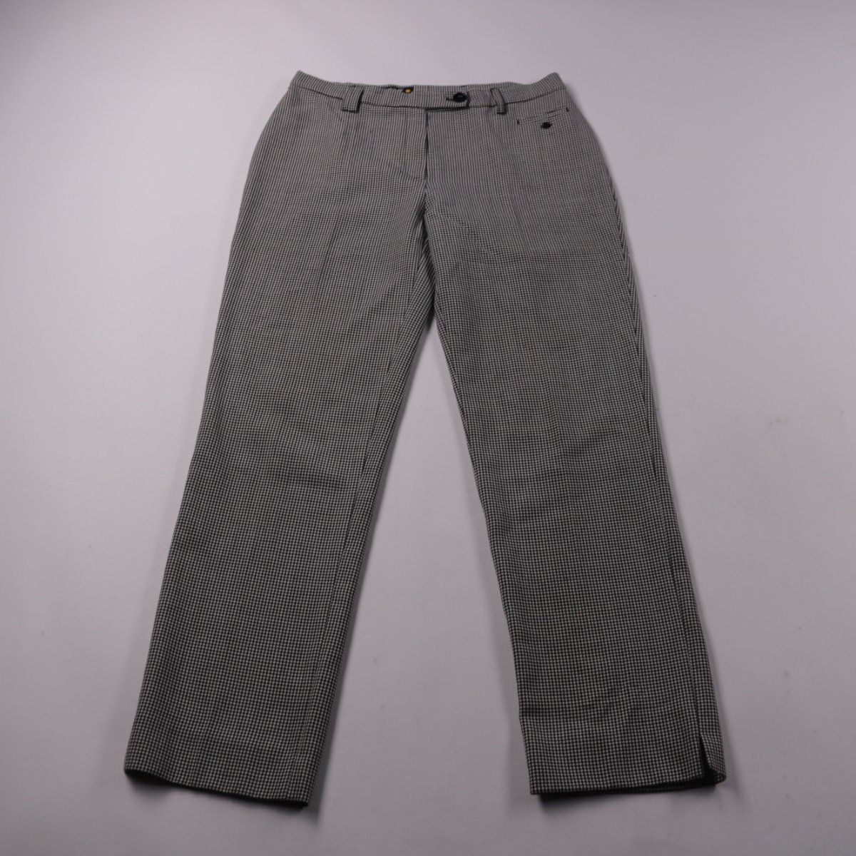 Классические брюки Wichtel в мелкую клетку/«гусиную лапку», прямой зауженный крой с поясом под ремень. Подойдут для офиса и повседневных образов в демисезон и круглый год. Практичный плюс — шерстяная ткань с добавлением эластана и подкладка для более комфортной носки.