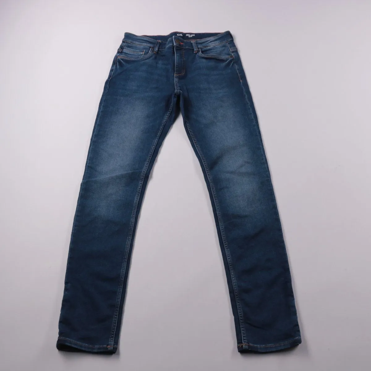 Мужские джинсы C&A Slim синего цвета с лёгким эффектом варки. Подойдут на каждый день и для школы/прогулок, хорошо сочетаются с футболками и худи. Ткань с эластаном даёт небольшую эластичность и комфорт в движении.