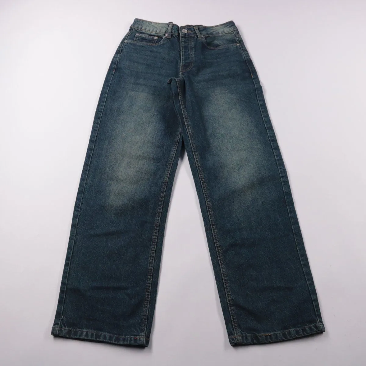 Мужские джинсы BoohooMAN из плотного синего денима с лёгким эффектом выбеливания. Подойдут для повседневной носки и городских образов с кедами или ботинками. Практичный материал хорошо держит форму и легко сочетается с базовым верхом.