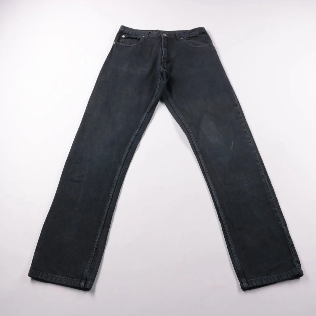 Мужские джинсы из денима, однотонные тёмные. Подойдут для повседневной носки и на работу, легко сочетаются с футболками и рубашками. Плотный 100% хлопок хорошо держит форму и комфортен в носке.