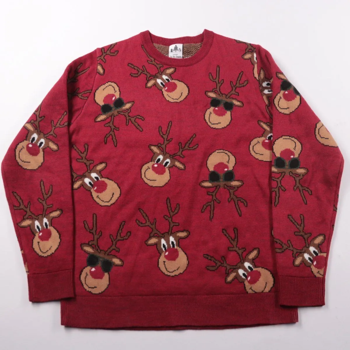 Свитер George бордового цвета с новогодним жаккардовым рисунком оленей. Подойдёт для зимних прогулок, праздников и уютных домашних вечеров. Тёплая вязка и мягкие манжеты помогают держать тепло и комфортно сидят по краям.