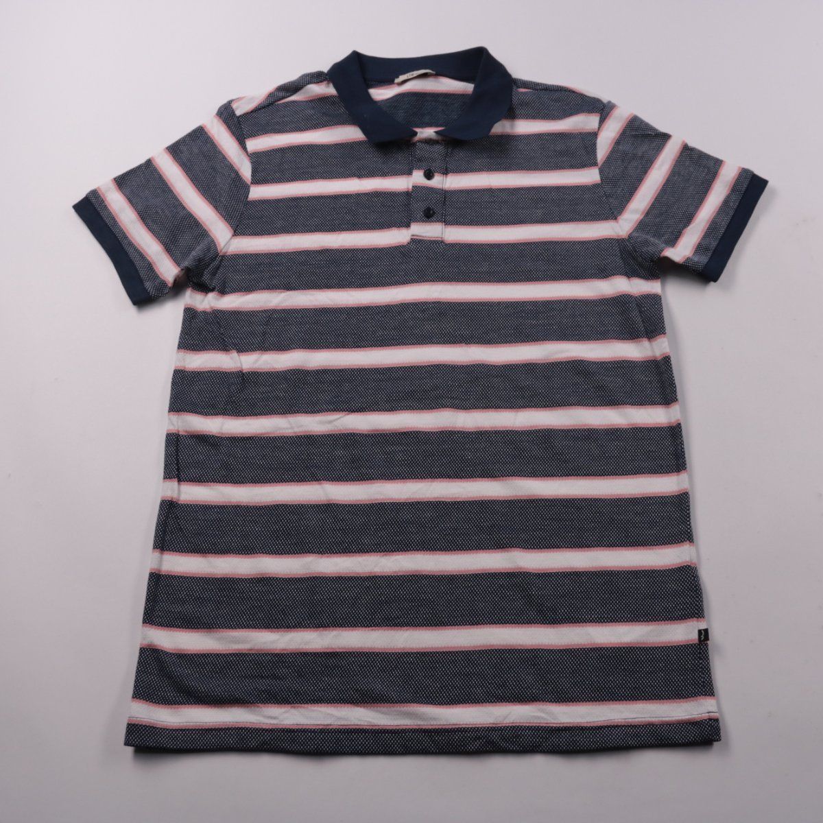 Мужское поло в полоску с отложным воротником и коротким рукавом. Подойдёт для повседневной носки летом и в тёплую погоду, хорошо сочетается с джинсами или шортами. Практичное преимущество — дышащий материал и удобная посадка.