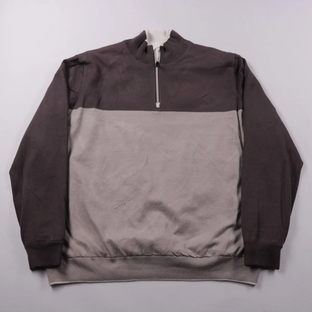 Мужской свитшот Brax Golf в двухцветном исполнении (серый/коричневый) с воротником-стойкой и короткой молнией. Подойдёт для повседневной носки и активных прогулок в прохладную погоду, удобно надевать слоем под куртку. Смесовая вискоза с полиамидом приятна к телу, а подкладка из полиэстера помогает вещи быстрее сохнуть после стирки.