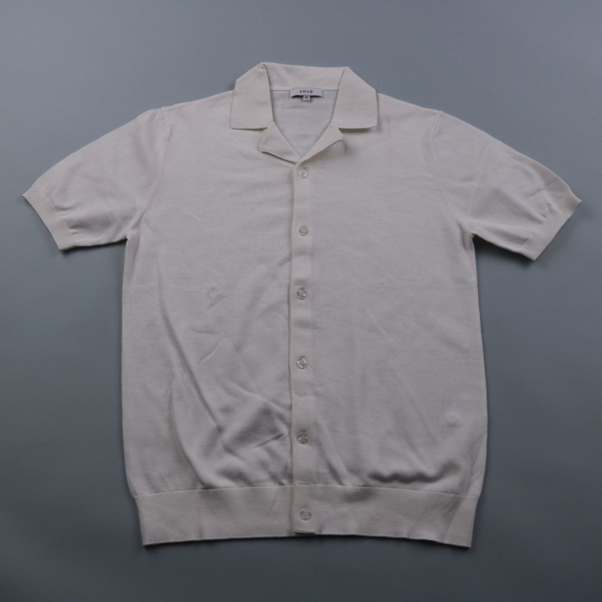 Мужское трикотажное поло ARNE молочного цвета на пуговицах, с отложным воротником и коротким рукавом. Подойдёт для повседневной носки летом и в тёплую погоду, хорошо смотрится с джинсами или чиносами. Натуральный хлопок комфортный и дышащий, легко стирается.