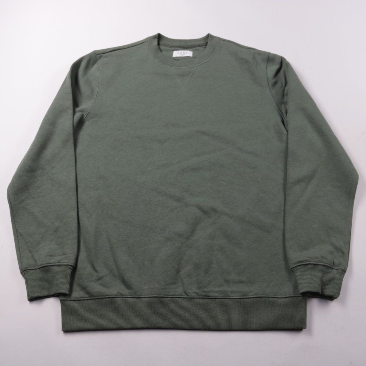Мужской свитшот Easy оливково-зелёного цвета, без капюшона, с круглым вырезом и манжетами. Подойдёт для повседневной носки в прохладную погоду и для многослойных образов. Смесовый состав (хлопок/полиэстер) проще в уходе и меньше мнётся.