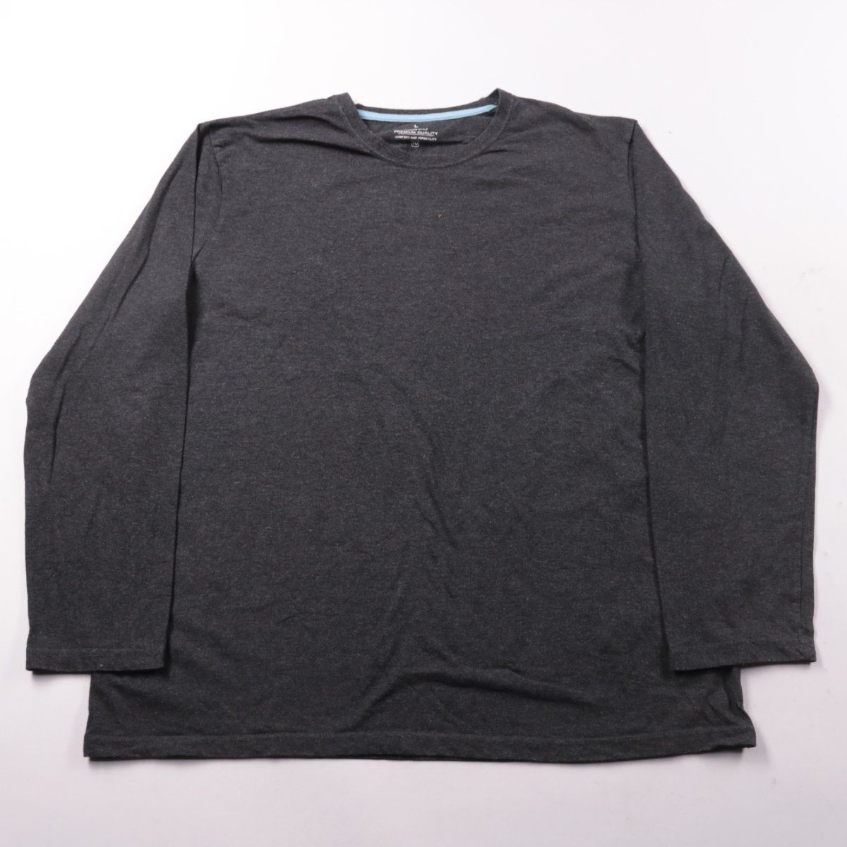 Мужская футболка TU с длинным рукавом, тёмно-серого меланжевого цвета и круглым вырезом. Подойдёт для повседневной носки и как базовый слой в прохладную погоду. Практична тем, что нейтральный цвет легко сочетается с джинсами и брюками.