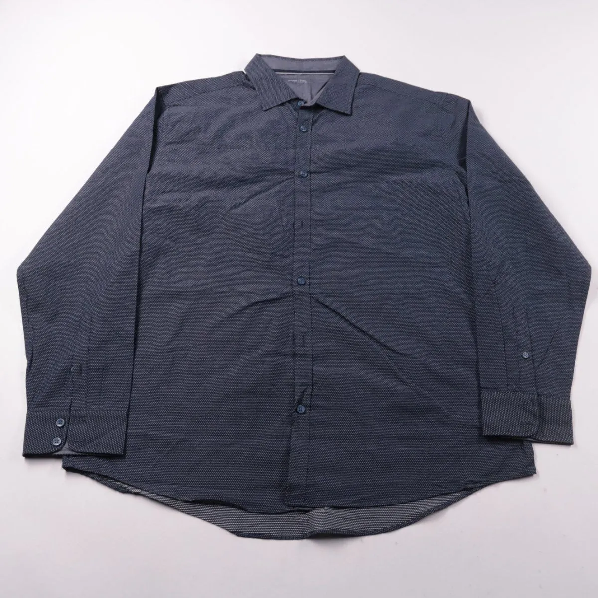 Мужская рубашка Anko тёмно-синего цвета с мелким узором, на пуговицах и с длинным рукавом. Подойдёт для офиса и повседневной носки в прохладную или тёплую погоду. Натуральный хлопок хорошо дышит и комфортен в течение дня.