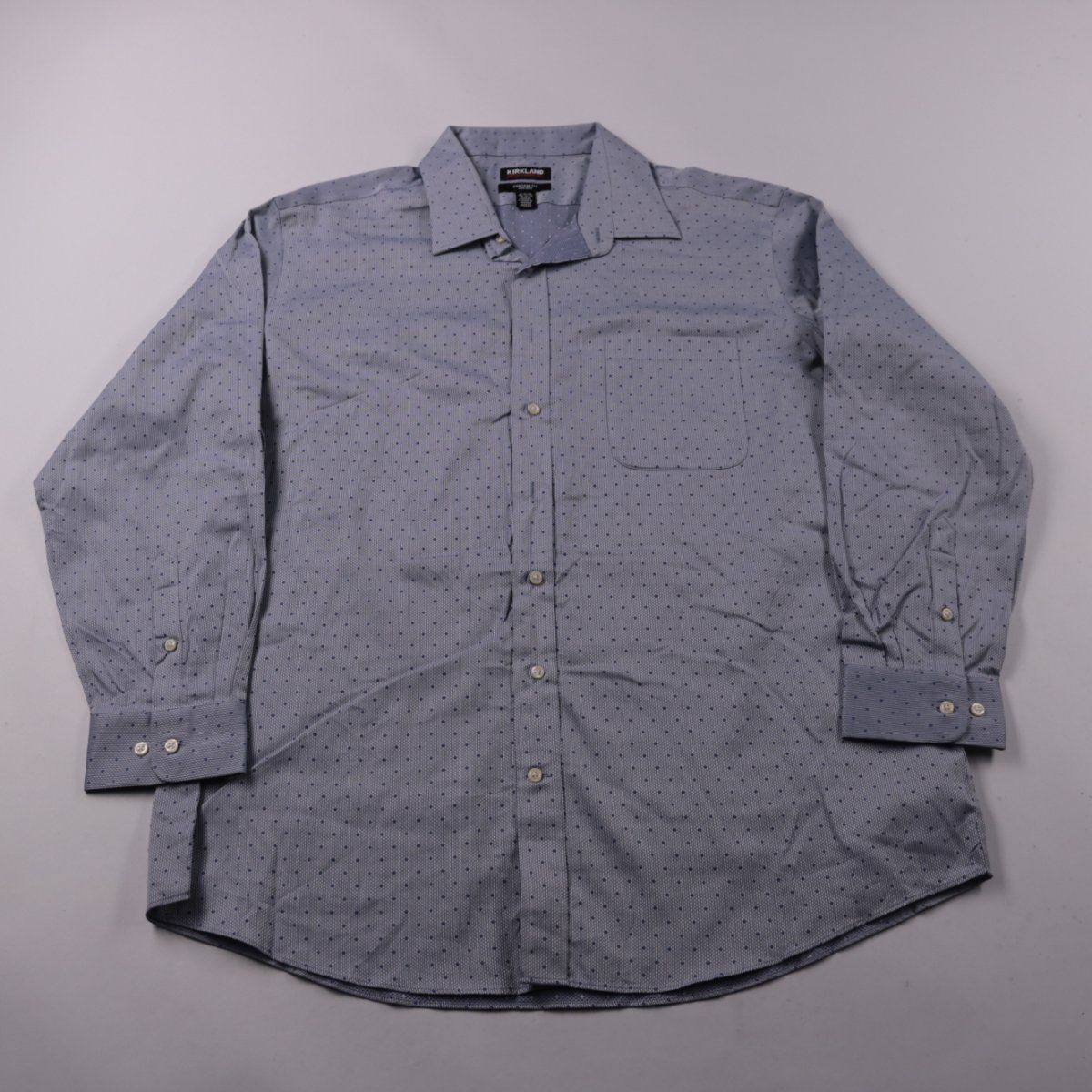 Мужская рубашка Kirkland Signature Custom Fit с длинным рукавом и мелким принтом в горошек. Подойдёт для офиса и повседневных образов в течение всего года. Ткань non-iron из хлопка проще в уходе и меньше мнётся.