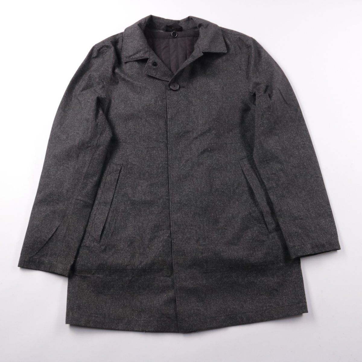 Мужское пальто M&S (Marks & Spencer) тёмно-серого цвета, прямого кроя с отложным воротником и боковыми карманами. Подойдёт для повседневной носки в городе в прохладную погоду весной и осенью, легко сочетается с джинсами и брюками. Материал полностью из полиэстера — практично в уходе и быстро сохнет.