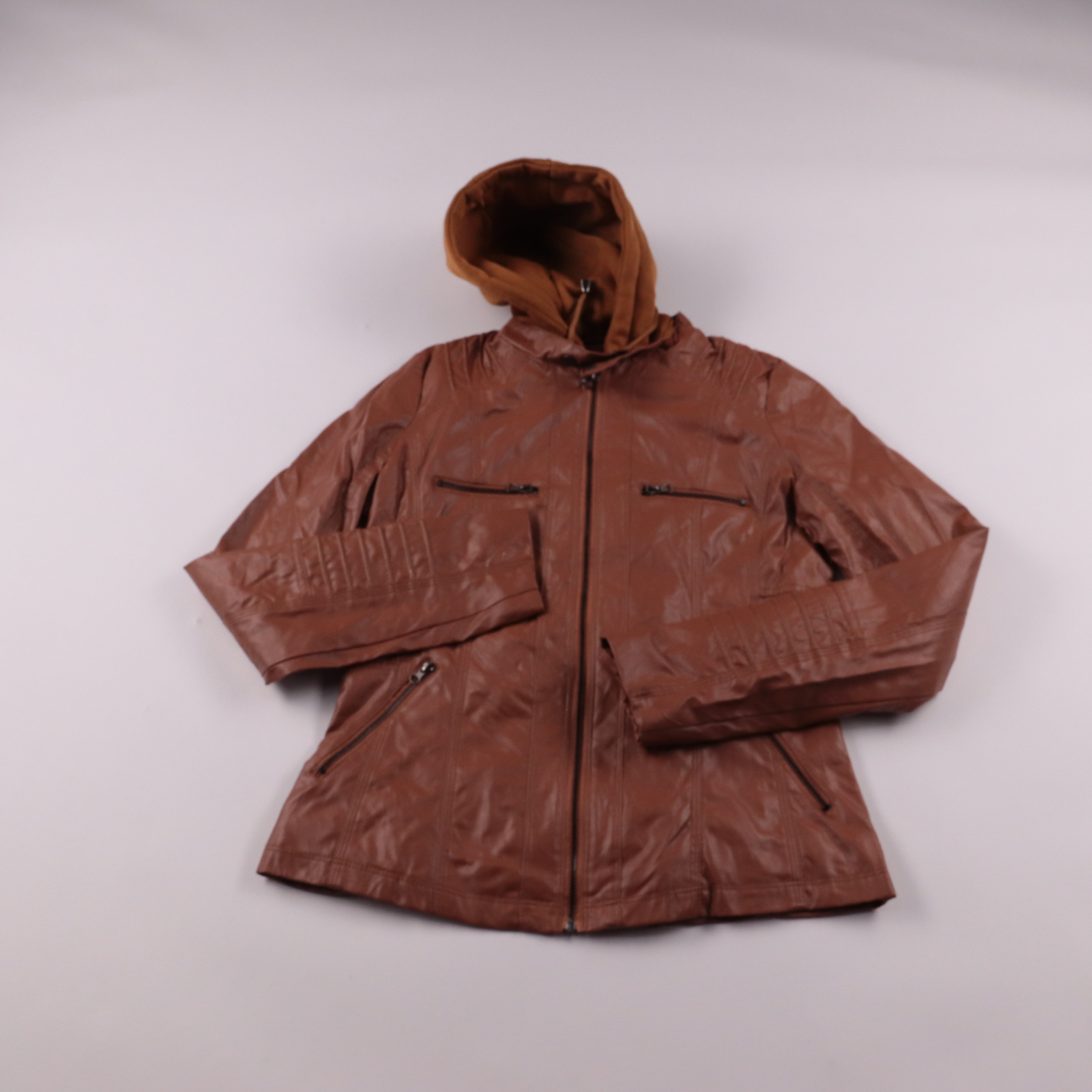 Мужская куртка из искусственной кожи (PU) в коричневом цвете с капюшоном и застёжкой на молнию. Подойдёт для повседневной носки в прохладную погоду весной и осенью, есть нагрудные и боковые карманы на молнии. Материал практичный: легко протирается и не...