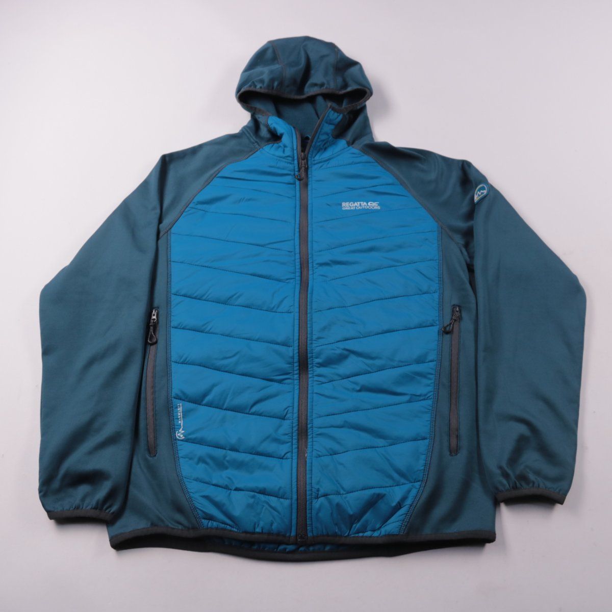 Мужская куртка Regatta Great Outdoors с капюшоном, комбинированная: стёганая утеплённая передняя часть и эластичные рукава. Подойдёт для прогулок и активного отдыха в прохладную погоду. Практичные карманы на молниях и лёгкий материал удобны в носке.