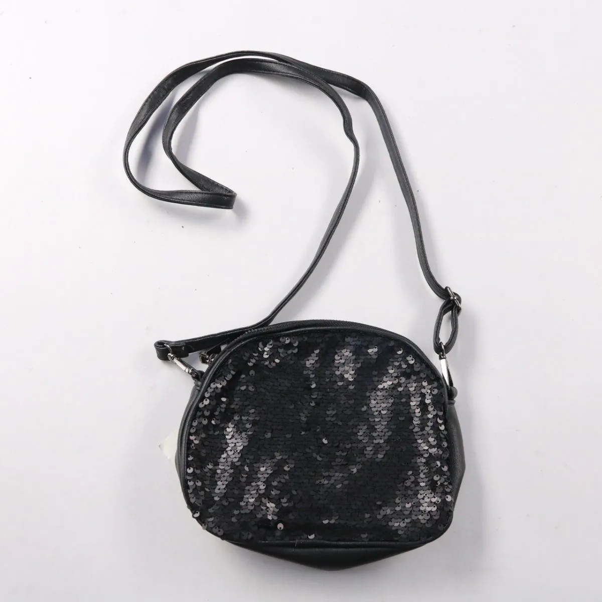 Небольшая сумка кросс-боди с блестящей отделкой пайетками спереди и гладкой отделкой сзади. Подойдёт для прогулок и выходов, когда нужно взять только самое необходимое. Длинный ремешок освобождает руки и удобно регулируется.