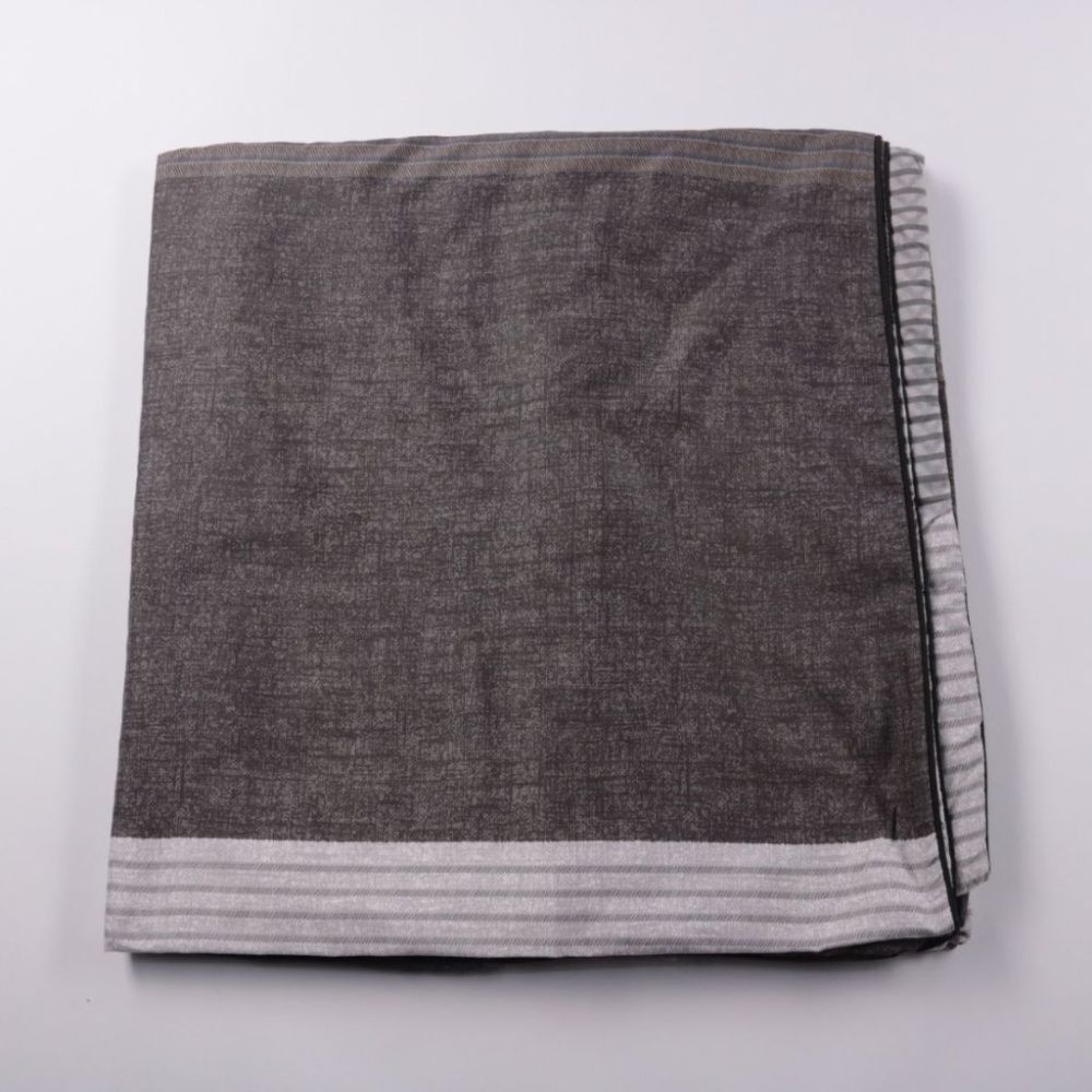 Пододеяльник в серо-графитовой расцветке с полосатой окантовкой по краю. Подойдёт для повседневного использования дома и в гостевой комнате, легко сочетается с однотонным бельём. Практичен тем, что немаркий и скрывает мелкие следы эксплуатации.