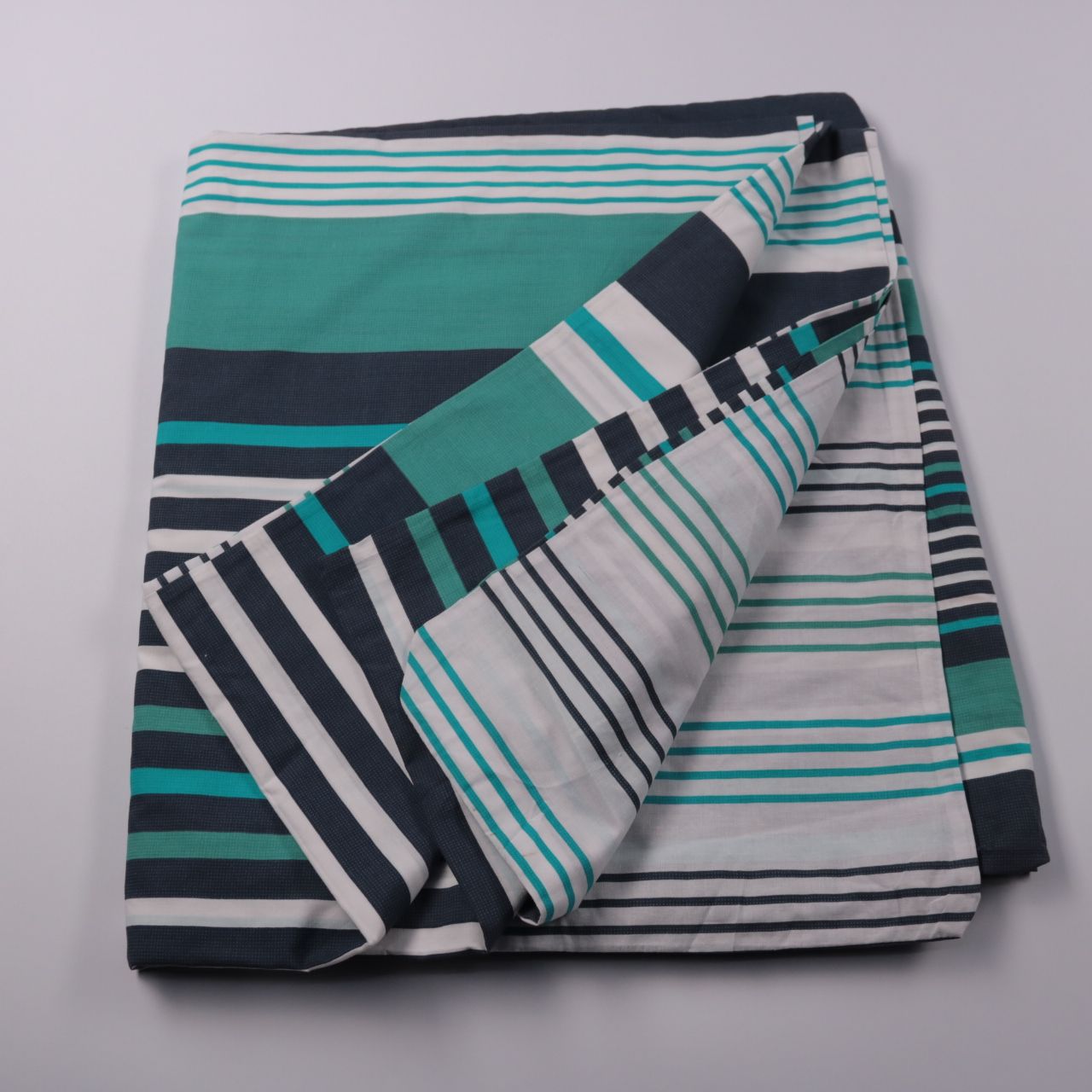 Пододеяльник в полоску, подойдёт для спальни или гостевой комнаты и легко сочетается с однотонным текстилем. Спокойные зелёно-сине-белые оттенки смотрятся аккуратно и не маркие в уходе. Практичен тем, что быстро освежает вид постели без замены всего ко...