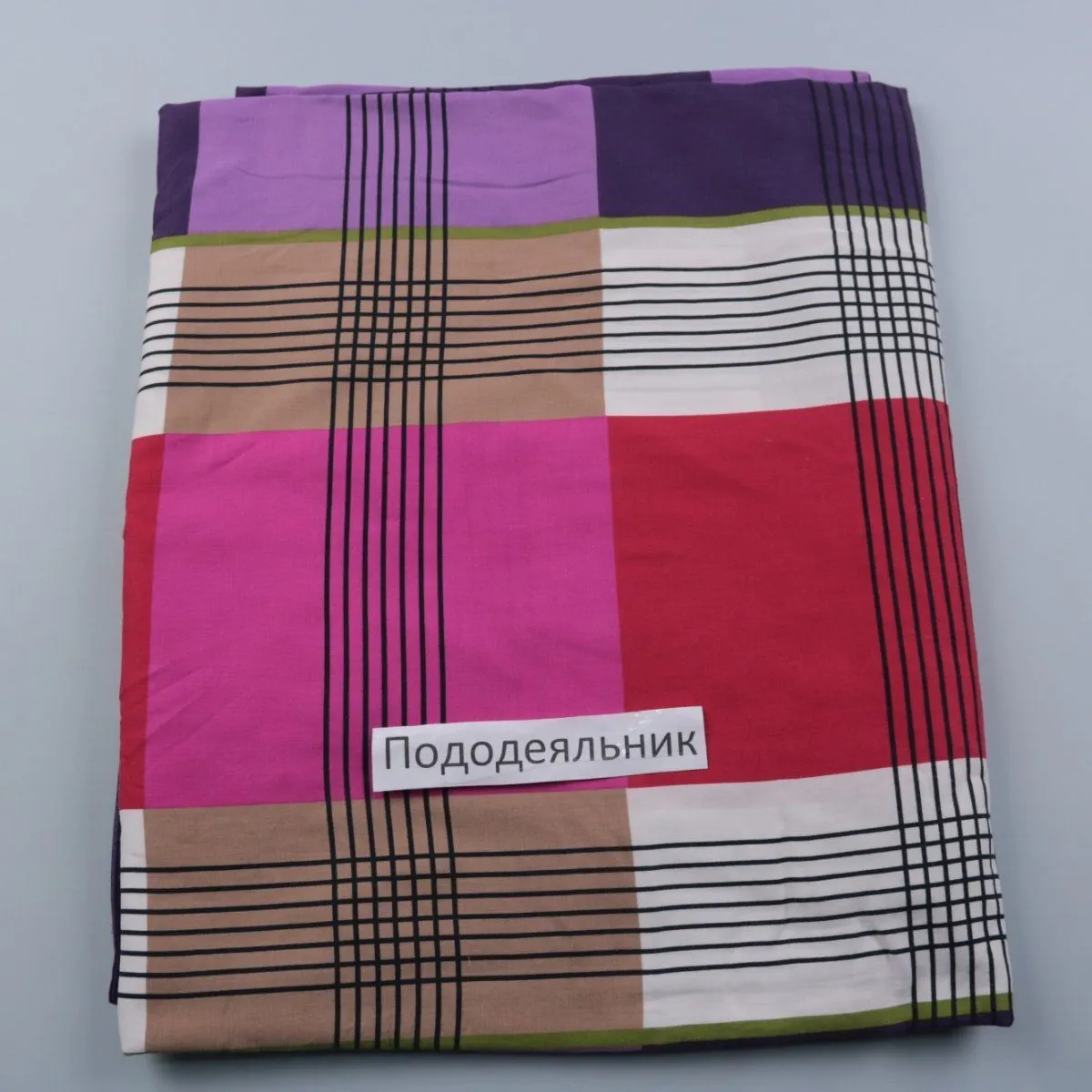 Пододеяльник в клетку, без указанного бренда, в яркой фиолетово-розово-красной гамме с контрастными линиями. Подойдёт для повседневного использования дома и легко сочетается с однотонным постельным бельём. Практичен тем, что рисунок немаркий и не так заметны мелкие следы эксплуатации.
