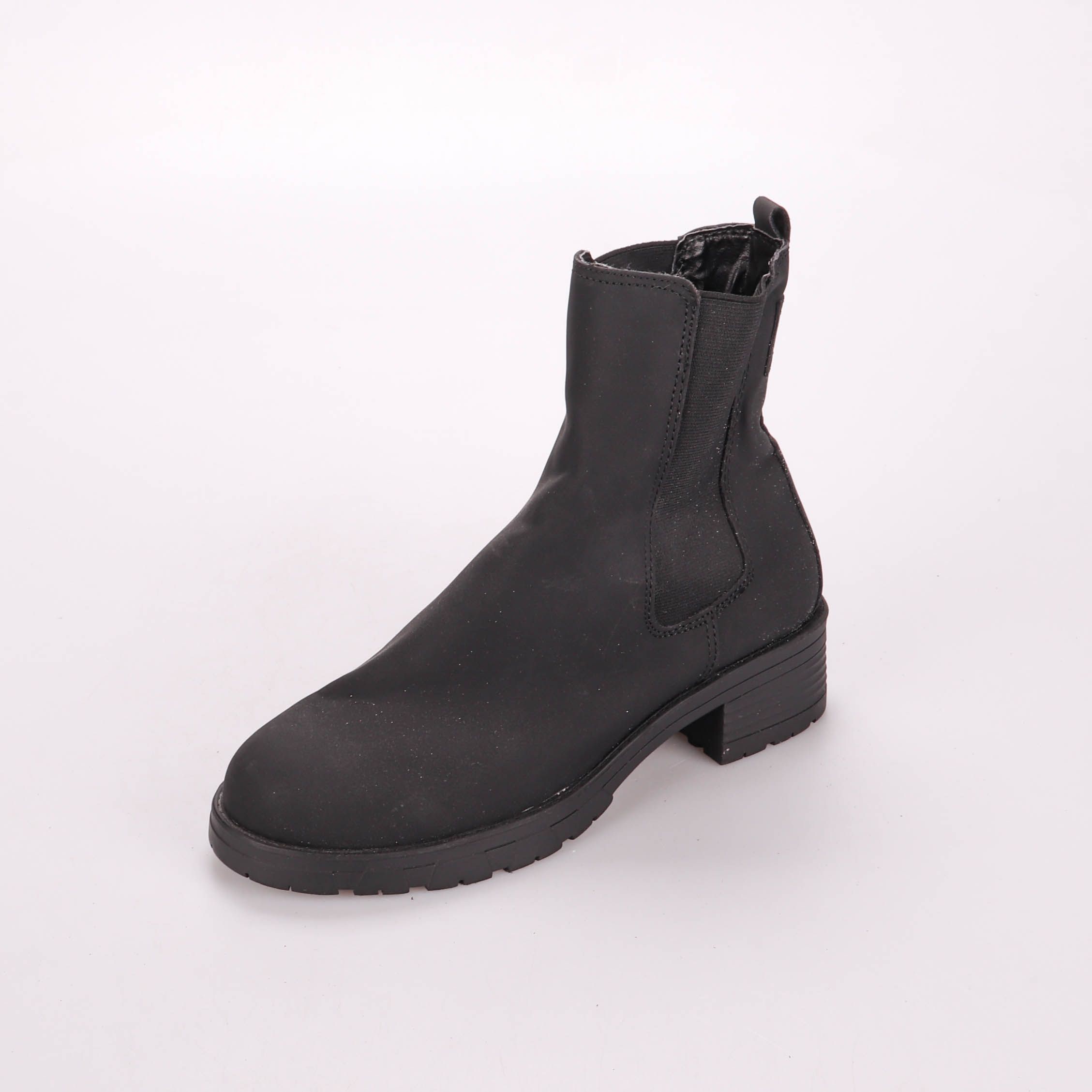 Женские ботильоны без бренда в черном цвете, с эластичными вставками по бокам и удобной посадкой. Подойдут на каждый день в демисезон: к джинсам, брюкам или платьям. Рельефная подошва и устойчивый каблук дают хорошее сцепление и комфорт при ходьбе.