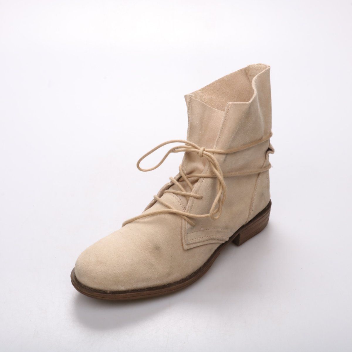 Женские ботильоны Exchange из светлой замши с высоким мягким голенищем и шнуровкой вокруг щиколотки. Подойдут для повседневных образов в межсезонье с джинсами или платьями. Устойчивый низкий каблук и удобная посадка делают их практичными для длительной ходьбы.