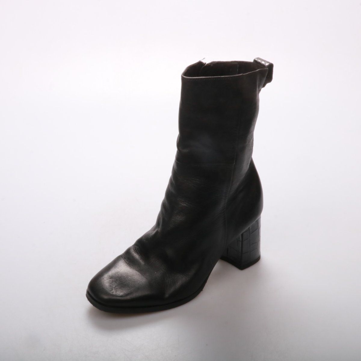 Женские ботильоны Tamaris из чёрной гладкой кожи на устойчивом каблуке и с молнией сбоку. Подойдут для повседневной носки в городе в демисезон, хорошо сочетаются с джинсами и платьями. Устойчивый каблук делает ходьбу комфортнее, чем на тонкой шпильке.