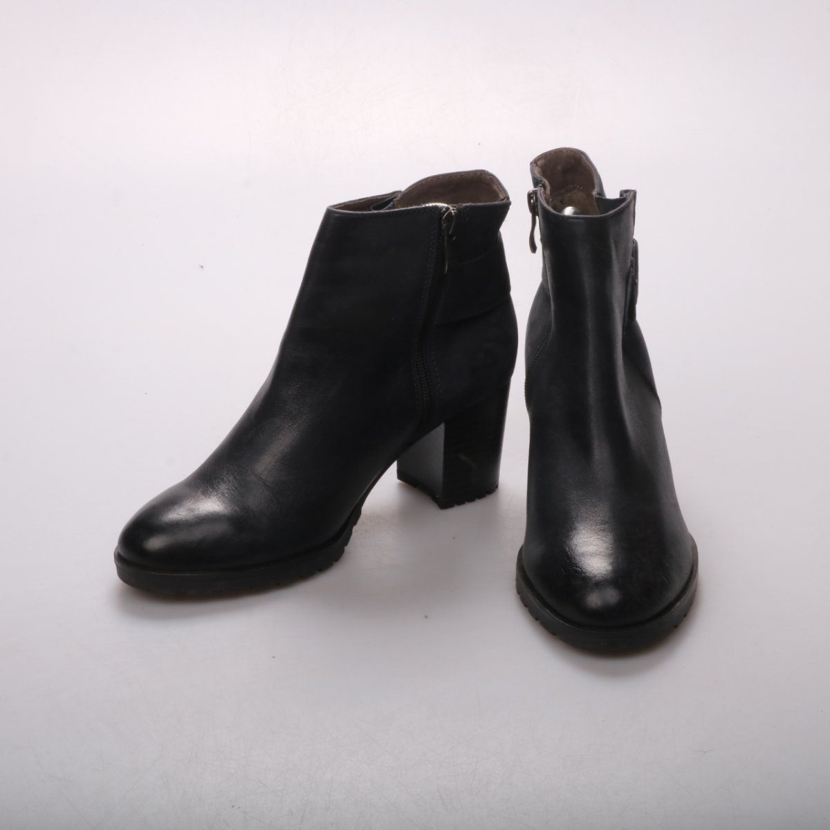 Женские ботильоны Caprice из гладкой чёрной кожи на устойчивом каблуке. Модель с боковой молнией и декоративным ремешком с пряжкой подойдёт для повседневной носки в прохладную погоду. Практичная рельефная подошва помогает увереннее держаться на разных покрытиях.