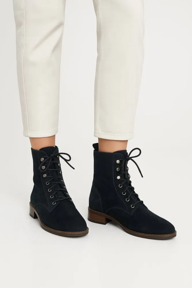 Женские ботинки на шнуровке с боковой молнией, без явного бренда. Подойдут для повседневной носки в демисезон и в прохладную погоду, легко сочетать с джинсами и брюками. Практичная деталь — удобная посадка за счёт шнуровки и быстрый доступ благодаря мо...