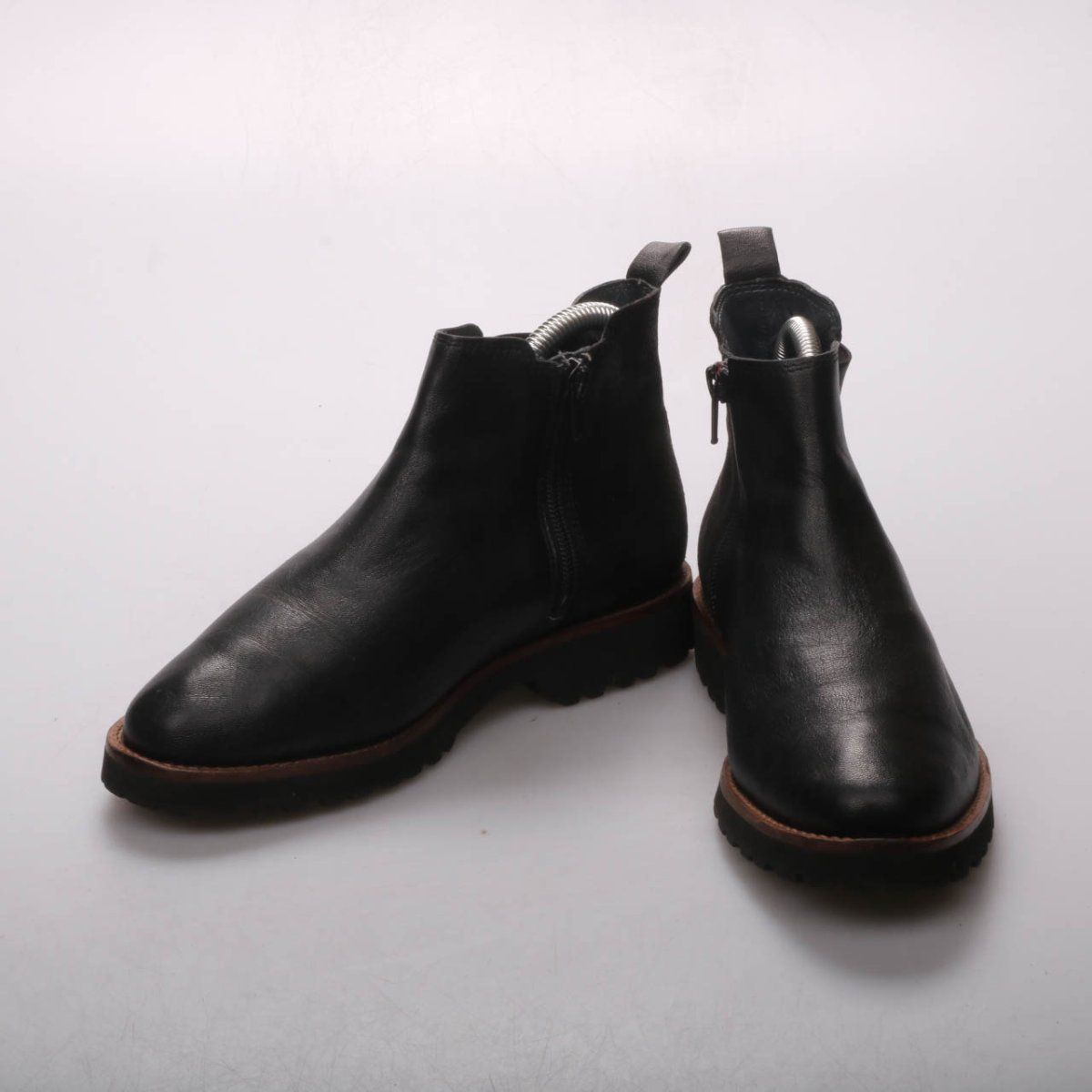 Женские ботильоны Sioux из чёрной натуральной кожи, с боковой молнией и петлёй на заднике. Подойдут для повседневной носки в городе в демисезон. Рельефная резиновая подошва даёт более уверенное сцепление на мокрой дороге.