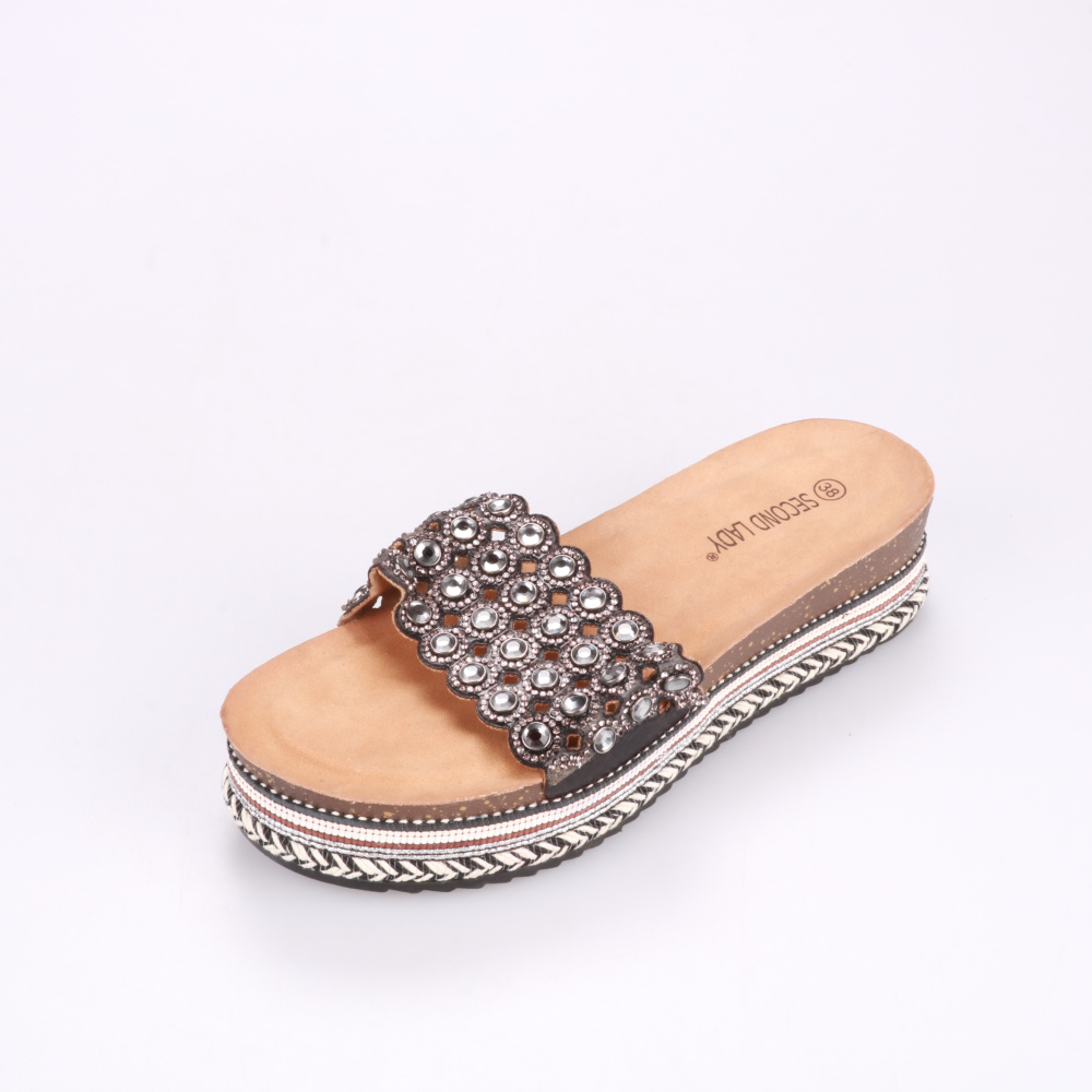 Женские шлёпанцы Second Lady на платформе с широким верхом и декоративными заклёпками. Подойдут для лета, отдыха и повседневных прогулок. Рифлёная подошва снижает скольжение и делает шаг устойчивее.
