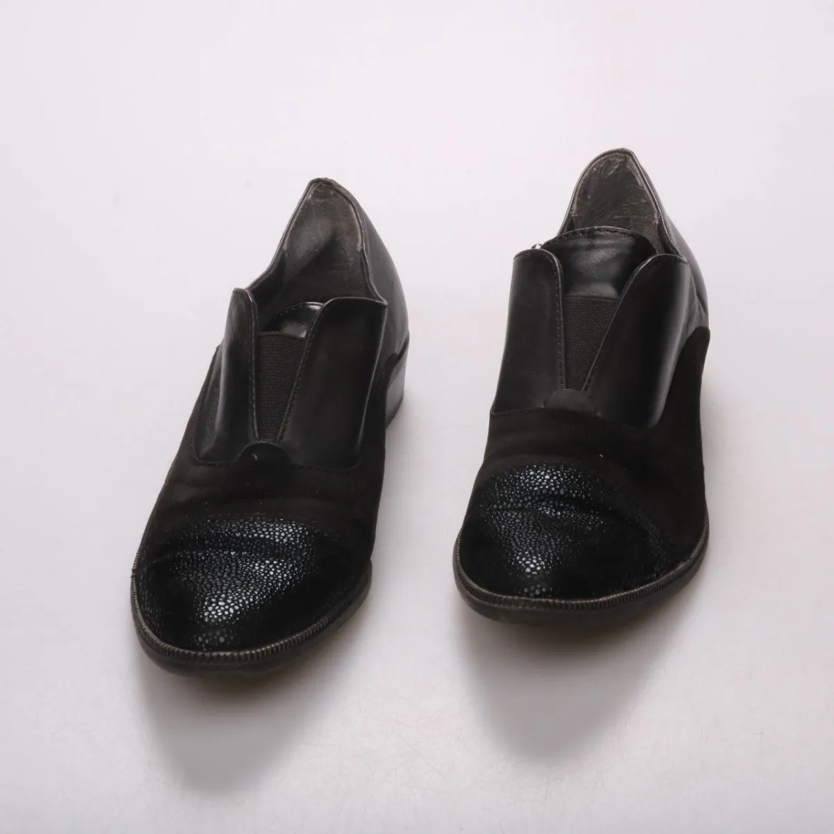 Туфли Tamaris чёрного цвета с фактурным носком и эластичными вставками для удобной посадки. Подойдут для офиса и повседневных образов в межсезонье и круглый год. Практичный плюс — устойчивый невысокий каблук и удобный формат slip-on без шнурков.