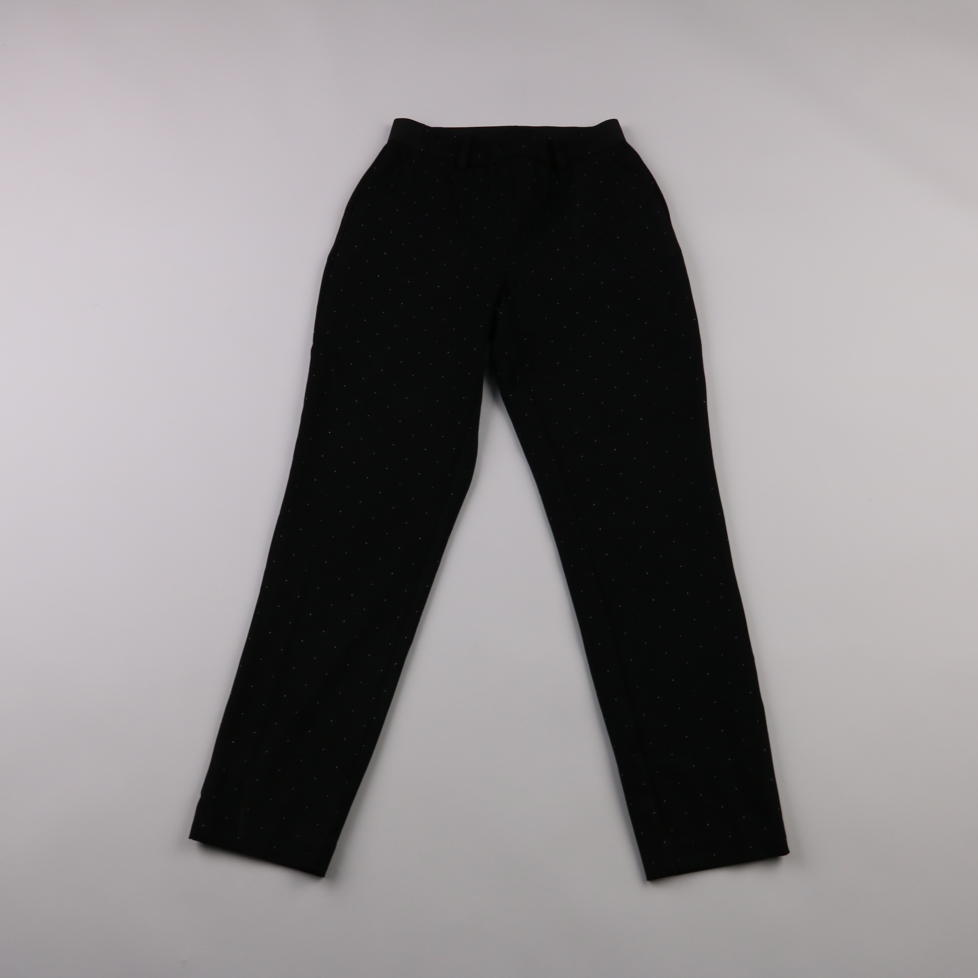 Женские брюки H&M прямого кроя, чёрные в тонкую белую полоску. Подойдут для офиса и повседневных образов с рубашкой или жакетом. Ткань слегка тянется за счёт эластана и комфортно сидит по фигуре.