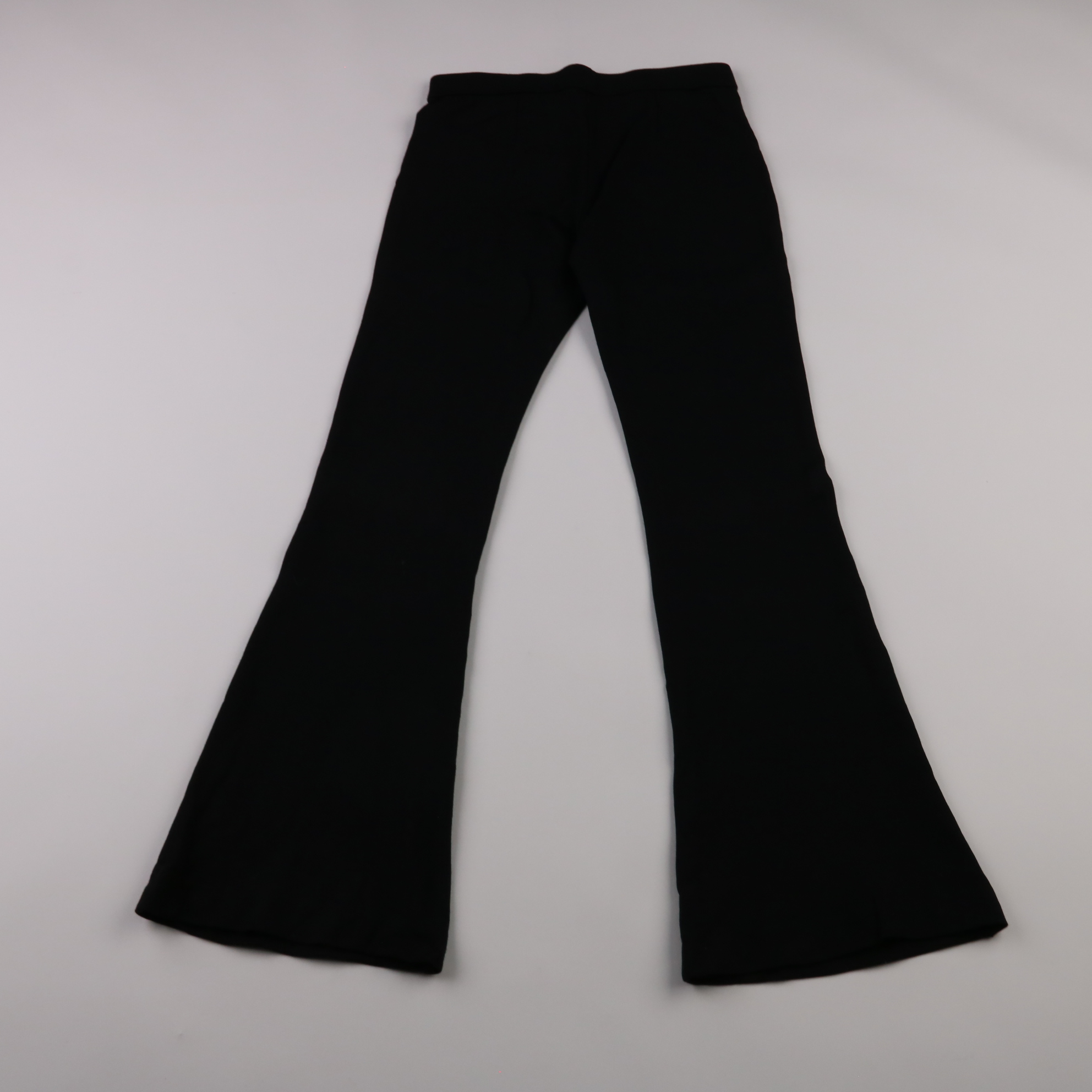 Чёрные женские брюки клёш из мягкого трикотажа/стретч-материала. Подойдут для повседневных образов и на выход, хорошо смотрятся с обувью на каблуке или платформе. Эластичная посадка делает их удобными в носке и не сковывает движения.
