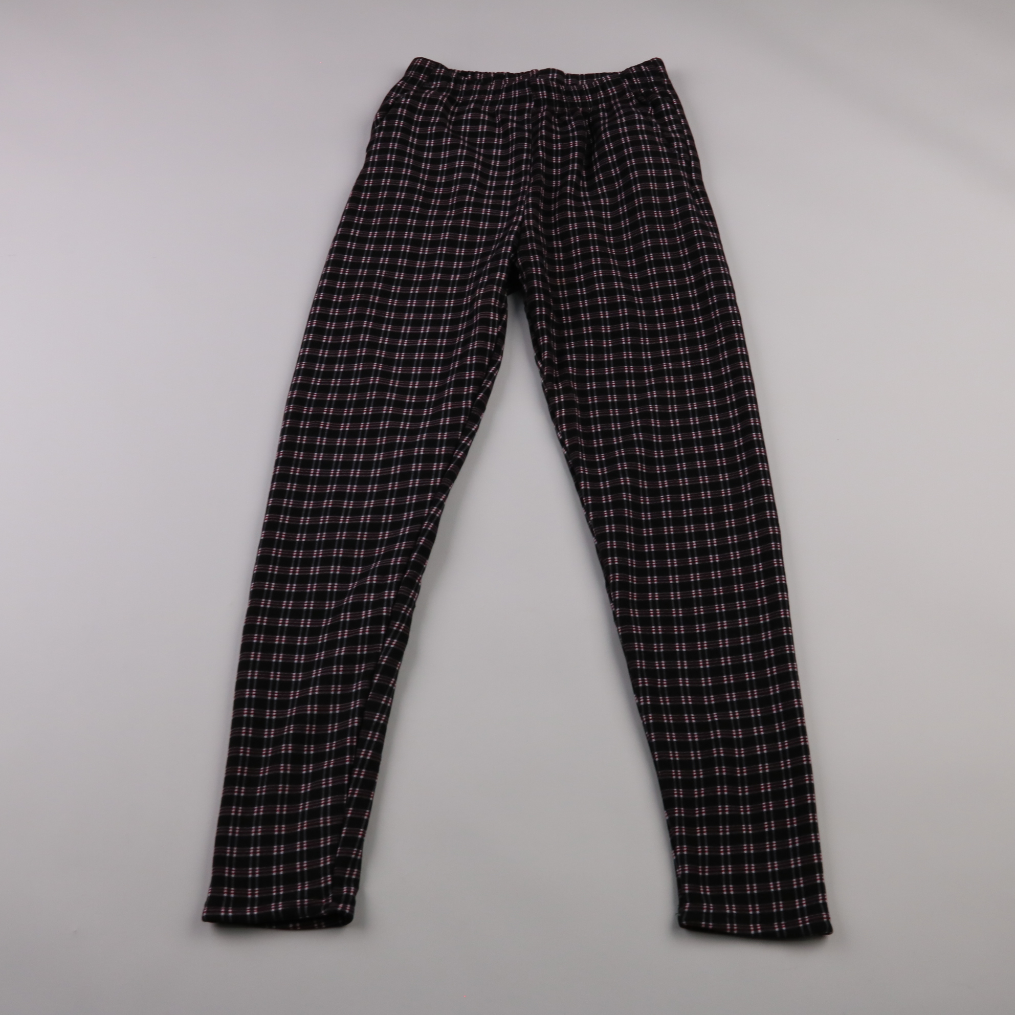 Женские брюки в клетку на мягкой резинке, без указания бренда. Подойдут для повседневной носки и домашних/выходных образов в прохладную погоду благодаря тёплой ворсистой изнанке. Практичный плюс — эластичная ткань хорошо тянется и не сковывает движения.