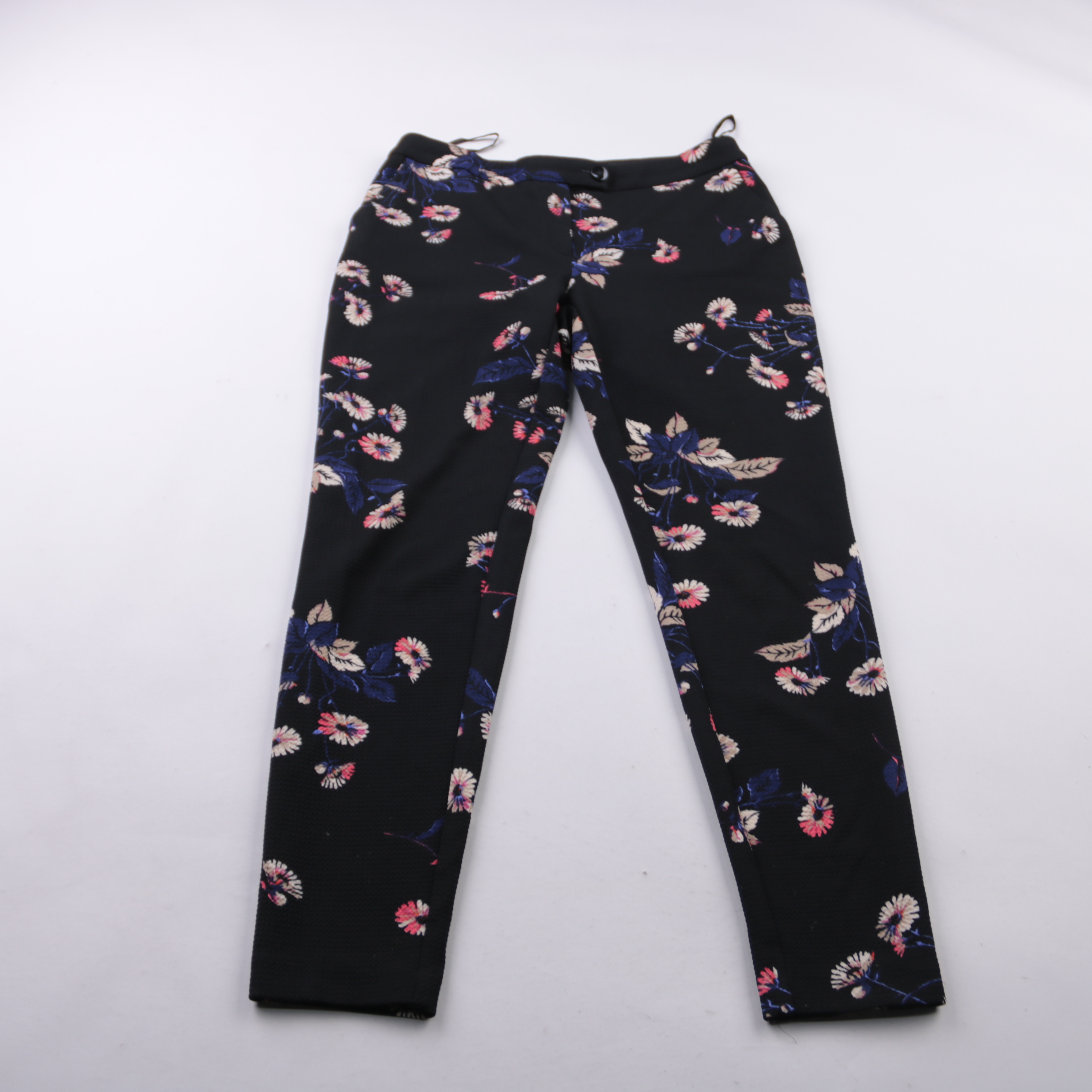 Женские брюки Next с зауженными штанинами и цветочным принтом на чёрном фоне. Подойдут для повседневных образов и офиса в сочетании с однотонным верхом. Плотная ткань хорошо держит форму и выглядит аккуратно.