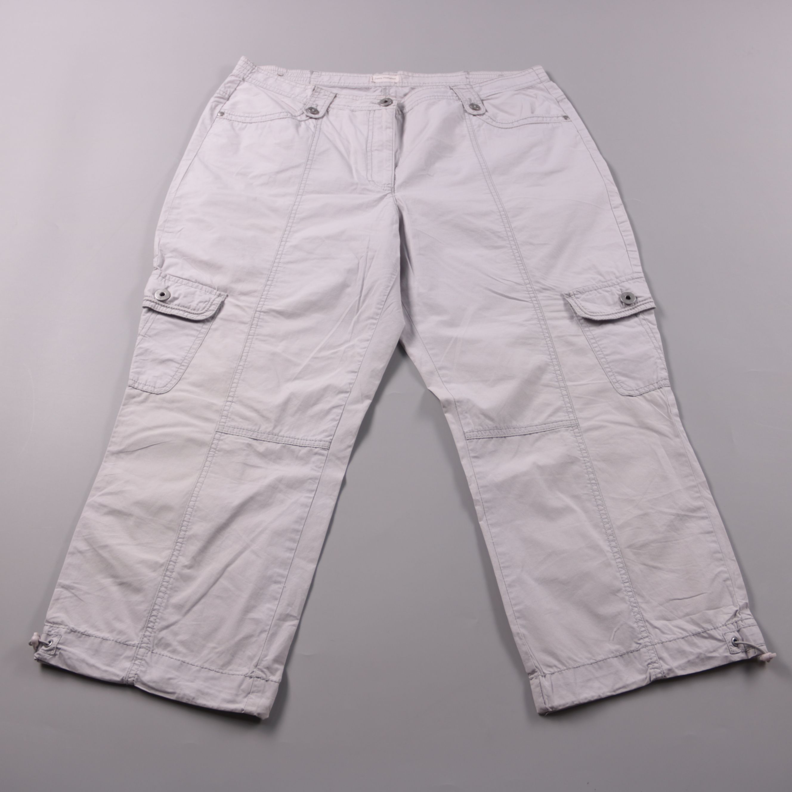 Мужские брюки-карго Janny Ploegman светло-серого цвета с боковыми накладными карманами и регулировкой по низу. Подойдут для повседневной носки и поездок в тёплую погоду. Практичный плюс — много карманов для мелочей.
