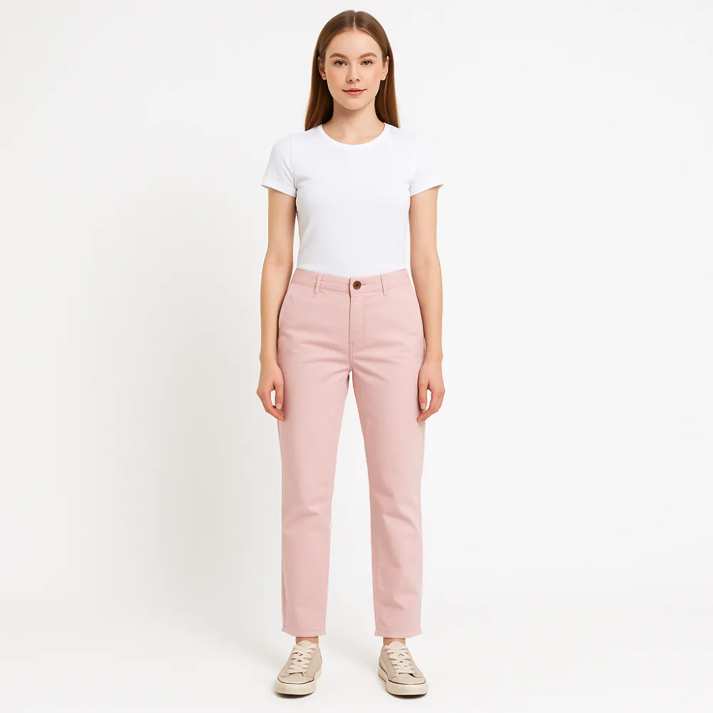 Женские брюки s.Oliver светло-розового цвета из хлопка с добавлением эластана. Прямой крой подойдёт для повседневных образов и офиса в тёплый сезон. Материал слегка тянется и комфортно сидит по фигуре.
