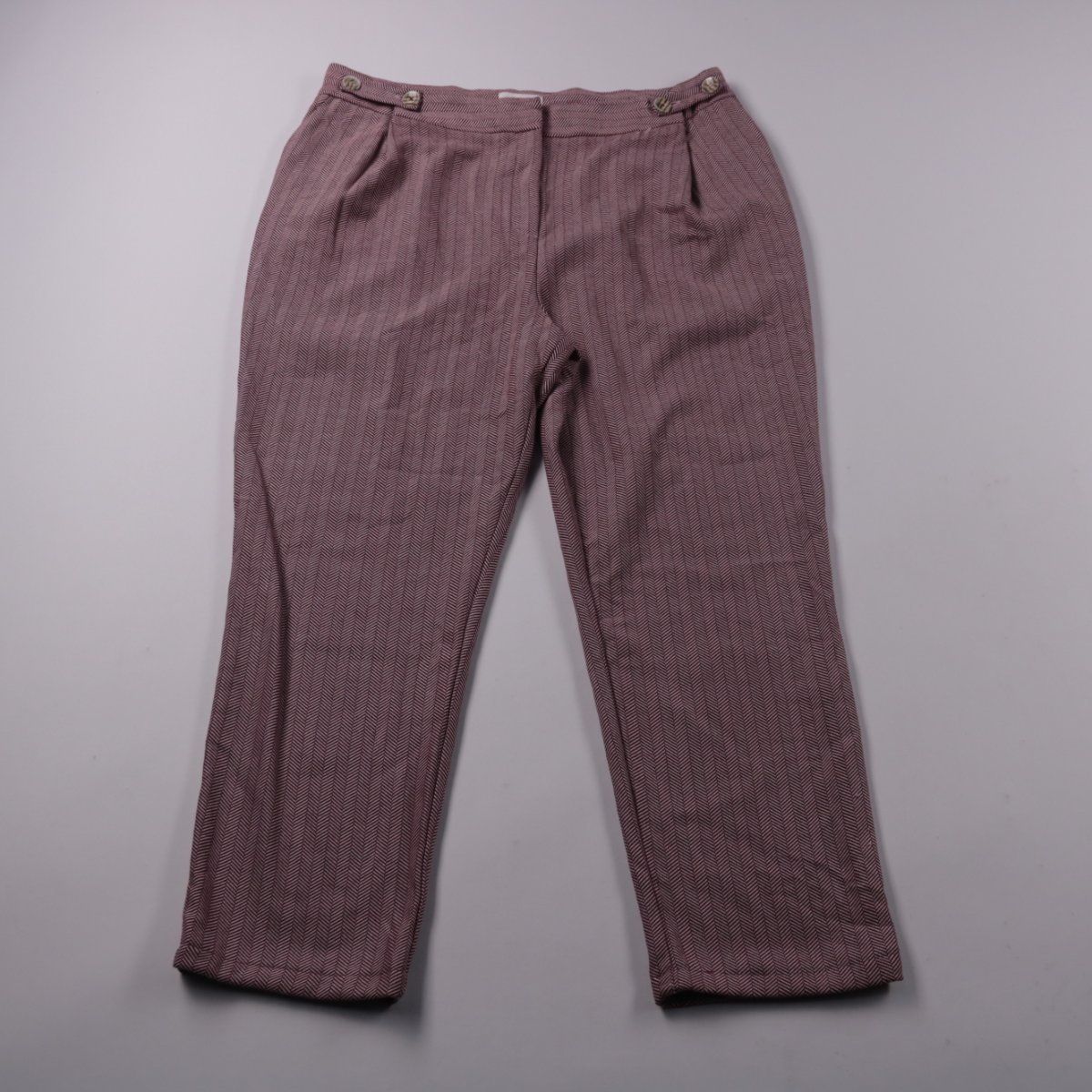 Брюки Topshop в бордовом оттенке с фактурным узором «ёлочка» и аккуратными складками у пояса. Подойдут для офиса и повседневных образов в демисезон, хорошо сочетаются с рубашками и жакетами. Ткань с добавлением эластана держит форму и комфортна в носке.