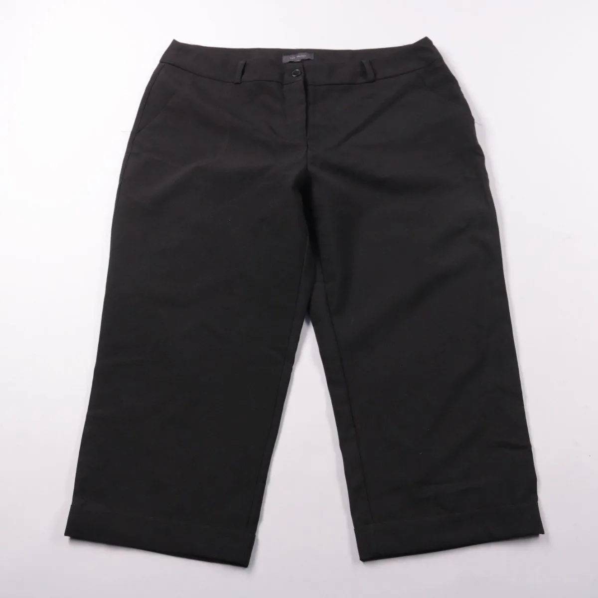 Женские укороченные брюки Kiabi Woman в чёрном цвете, аккуратный классический крой со стрелками и застёжкой на пуговицу. Подойдут для офиса и повседневных образов с рубашкой или жакетом. Практичны тем, что легко сочетаются с любым верхом и обувью.