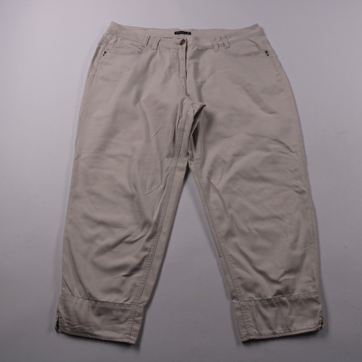 Женские брюки Bréal в светло-бежевом цвете, укороченная длина с лёгкой посадкой по фигуре. Подойдут для повседневных образов и офиса в тёплое время года. Ткань с эластаном немного тянется и комфортна в носке.
